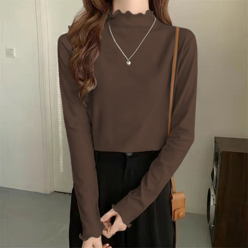 【德絨發熱保暖!限時買一送二!】秋冬爆賣木耳邊女士打底衫