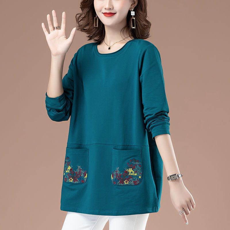 【棉麻寬鬆!限時買一送一!】刺繡復古女士中袖上衣