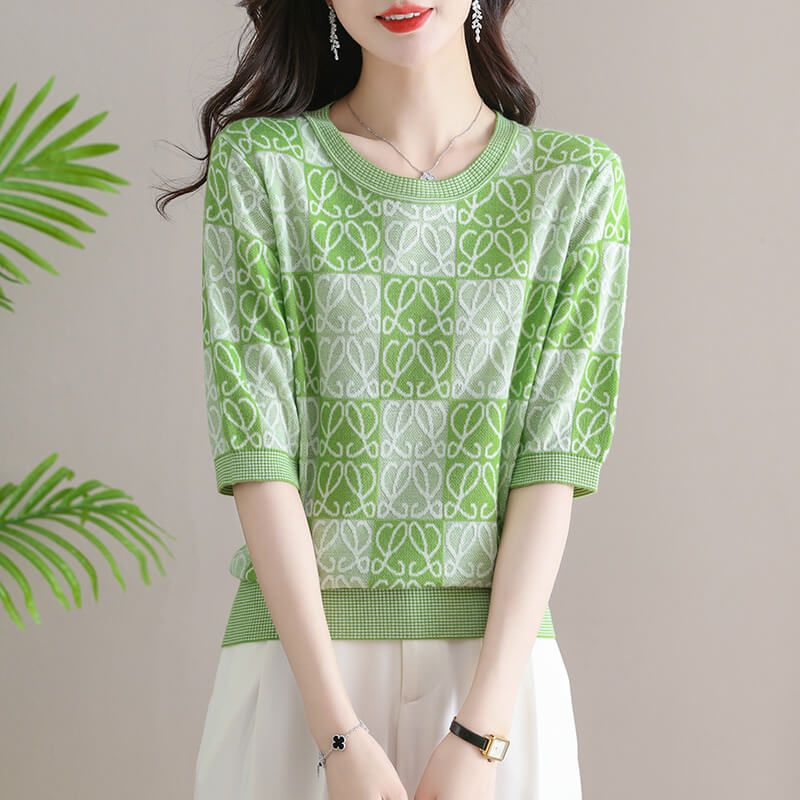 【超好手感!不掉色!】女士圓領薄款透氣冰絲短袖