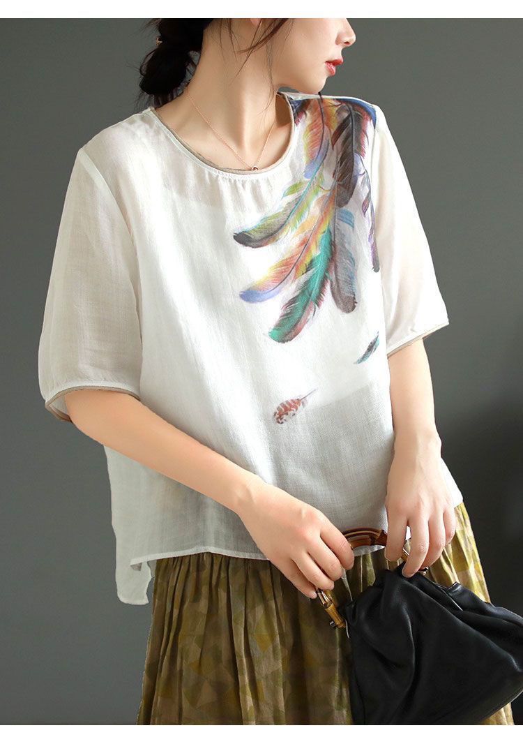 【飄逸寬鬆!限時買一送一!】夏季女士復古印花高端棉麻T恤