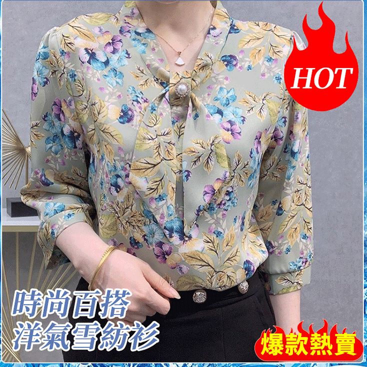 【大氣優雅!限時買一送一!】夏季女士絲滑親膚洋氣雪紡衫