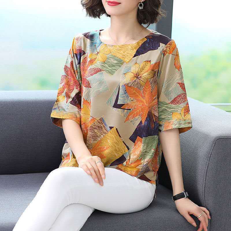 【廠家直銷!限時買一送一!】復古冰絲中袖顯瘦媽媽裝