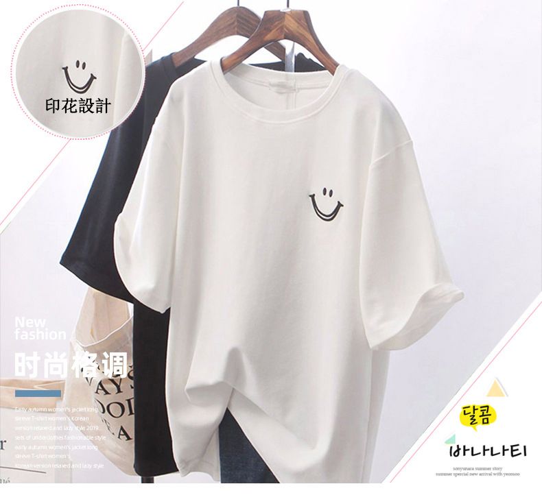 【簡約寬鬆!限時買一送一!】夏季女士笑臉圓領短袖T恤