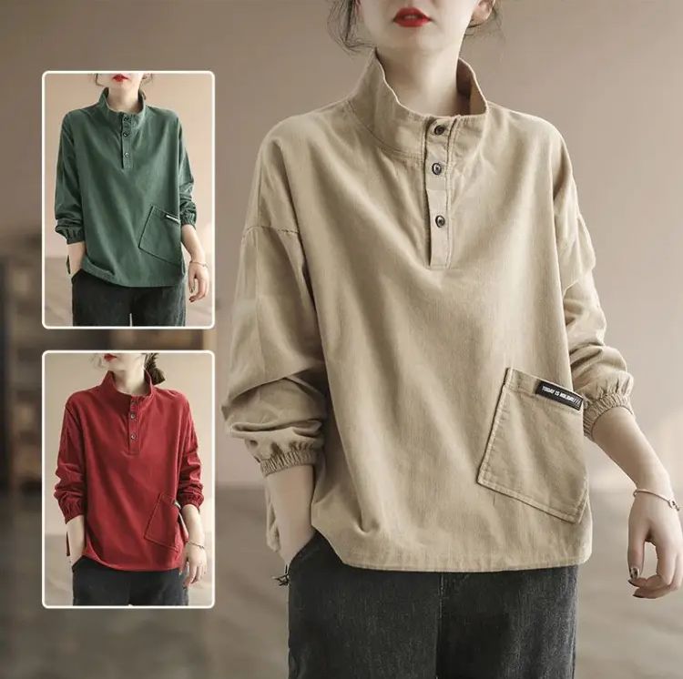 【親膚顯瘦!限時買一送一!】女士大碼寬鬆燈芯絨立領衛衣