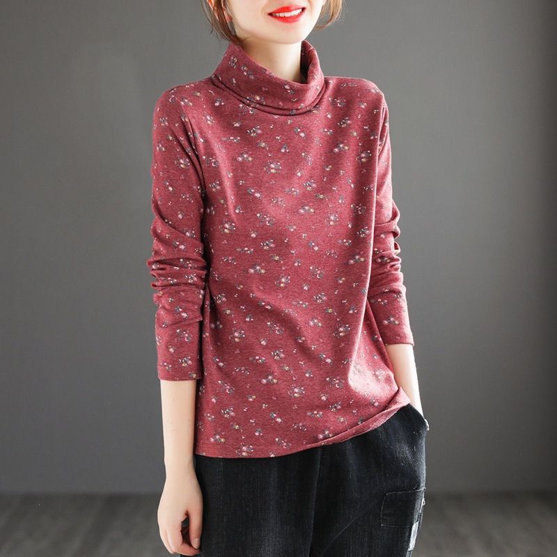 【新年穿新衣!特惠買一送一!】高領文藝印花百搭女士上衣
