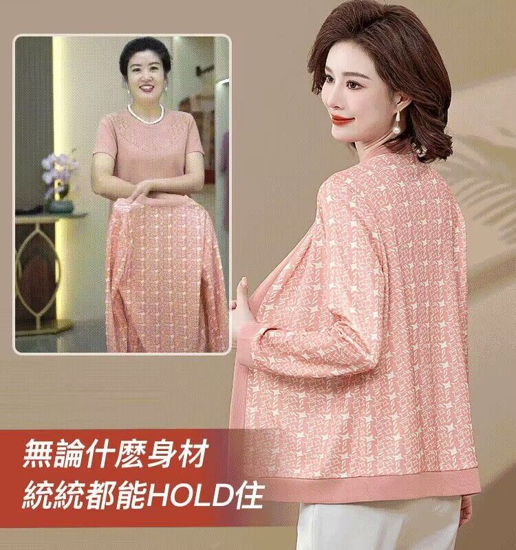 【優質純棉】中老年媽媽針織外套T恤兩件套