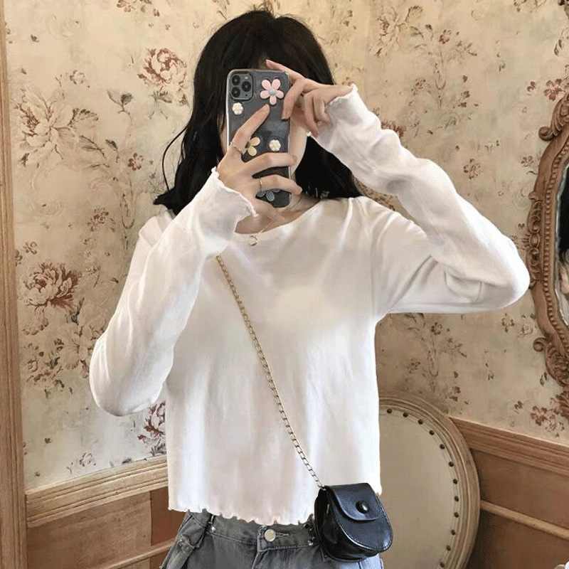 【買一送一!每件僅需400元!】木耳邊韓版修身高彈長袖上衣