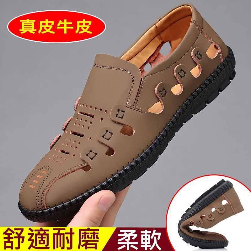 【頭層牛皮!】夏季鏤空真皮男鞋