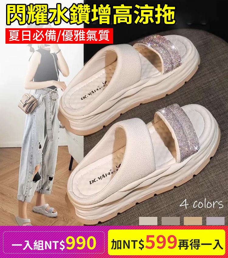 【小個子增高神器!】時尚爆款閃耀水鑽涼拖