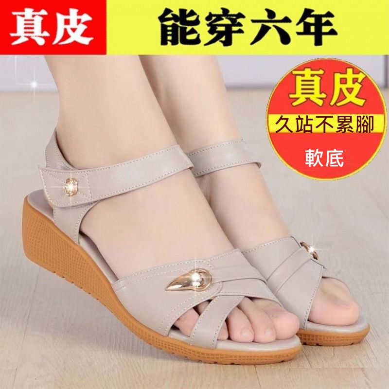 【告別磨腳!】軟皮防滑百搭女士涼鞋