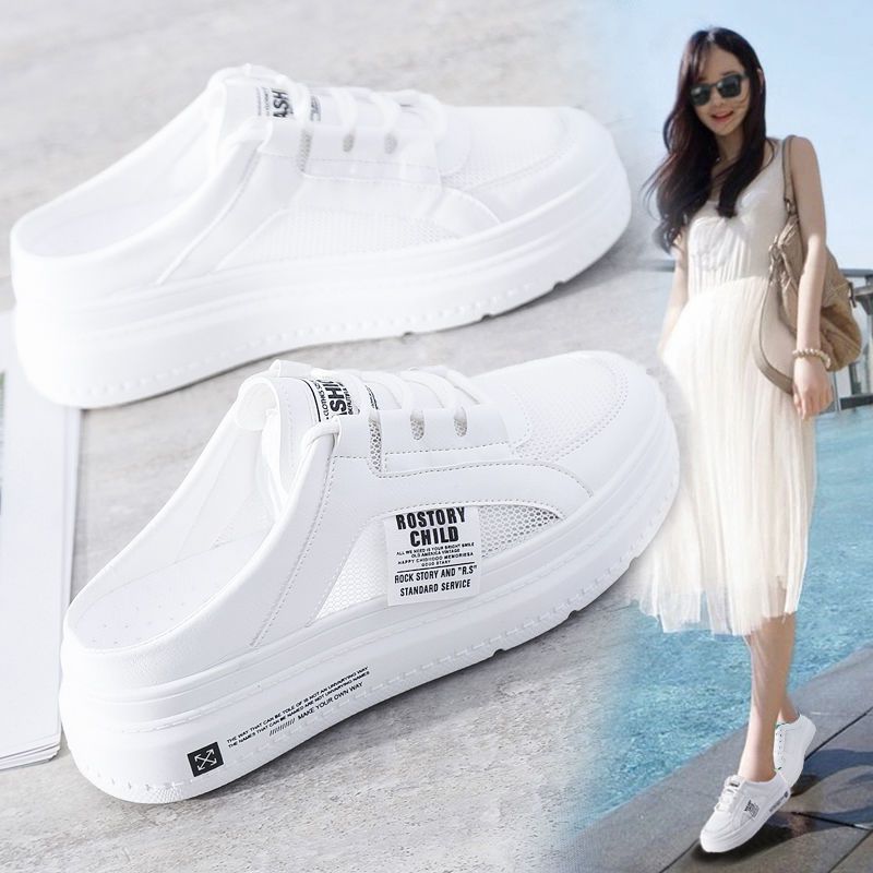 【懶人一腳蹬!】新款女士夏季網面包頭半拖鞋