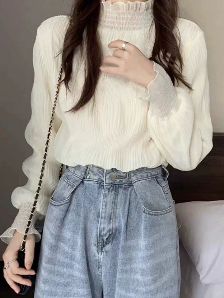 【秋冬上新!特惠買一送一!】半高領木耳邊設計感長袖上衣