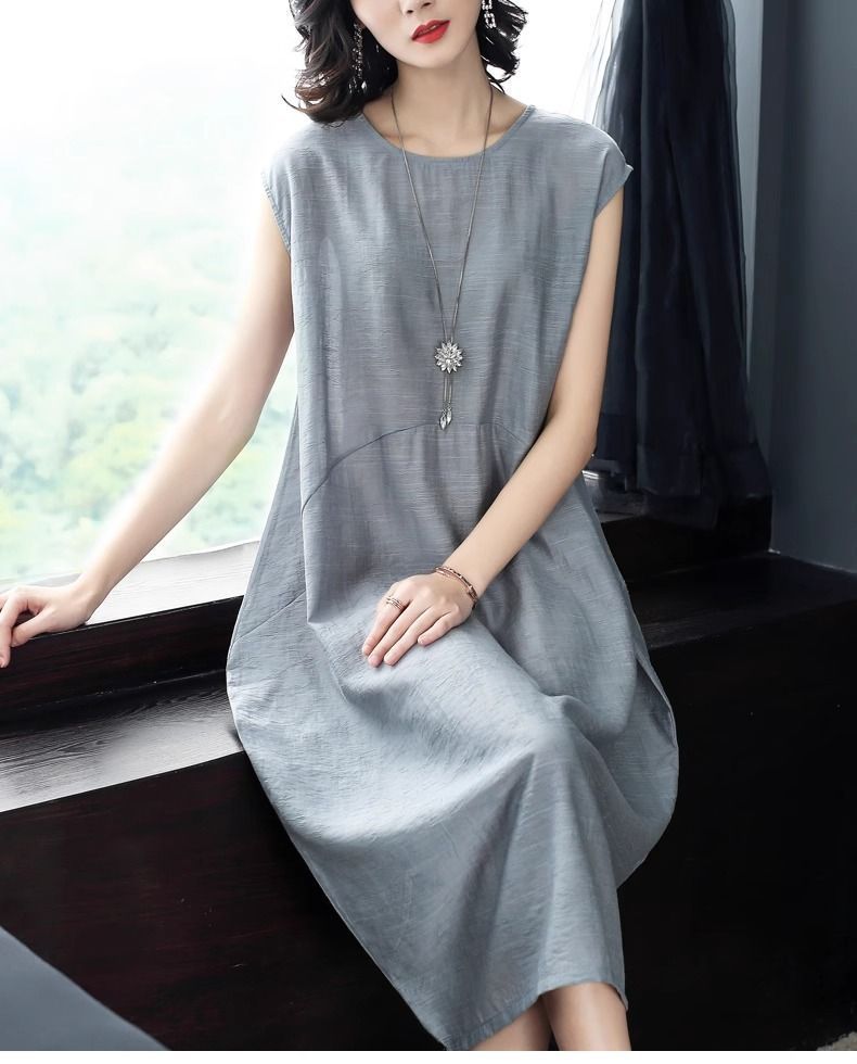 【全台免運!特惠買一送一!】大氣簡約純色文藝中長款連衣裙