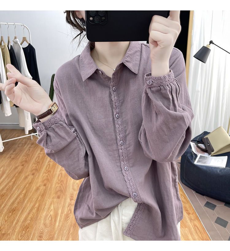 【全台免運!特惠買一送一!】蕾絲拼接寬鬆減齡純棉襯衣