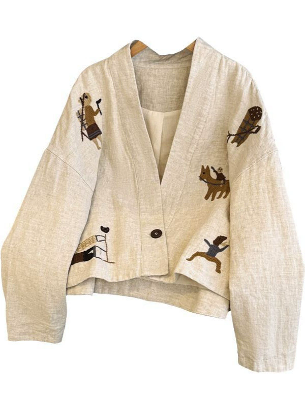 【秋季上新!全台免運!】短款高級感重工刺繡棉麻外套