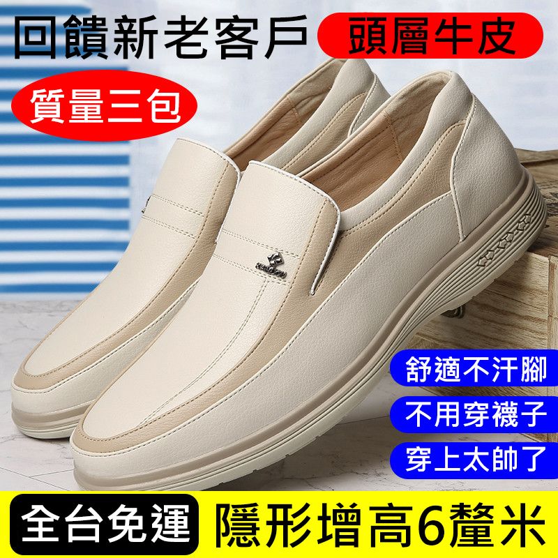 【踩雲感+增高3cm】牛筋底細膩牛皮百搭男士皮鞋