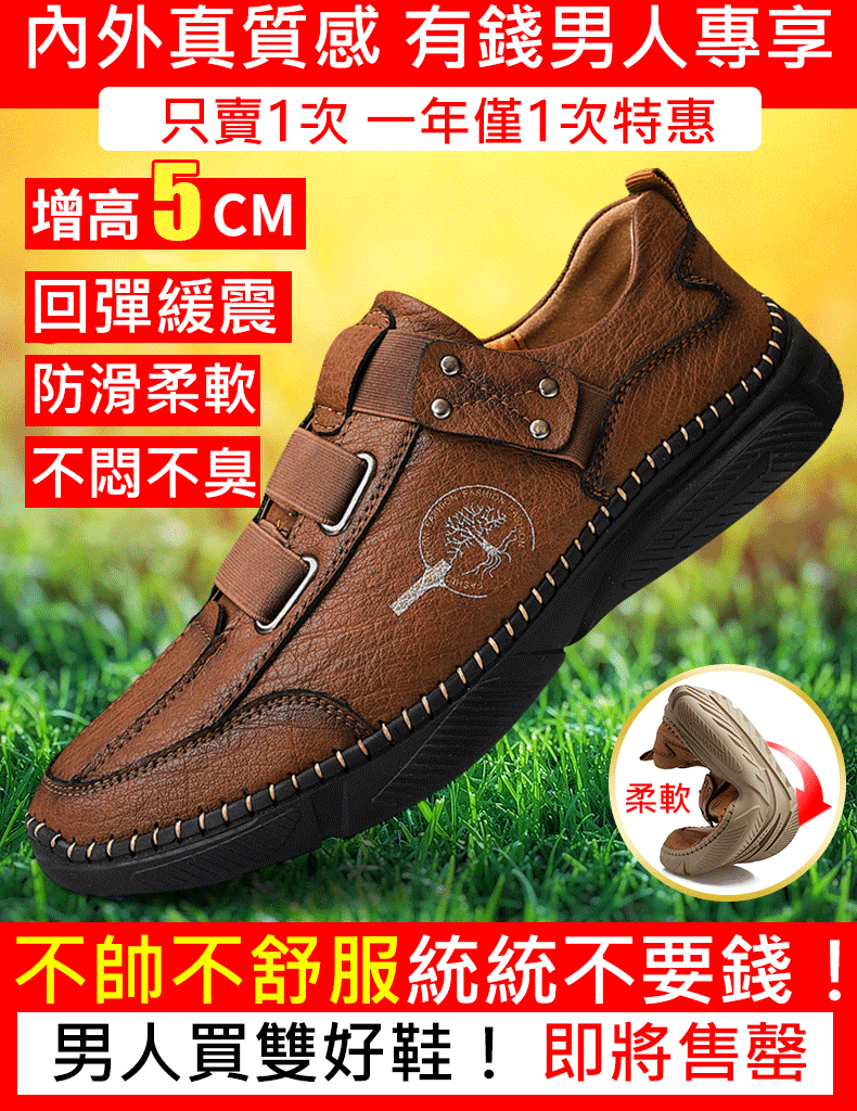 【清倉1折】高檔純牛皮男靴,防滑耐磨透氣,隱形增高5cm!