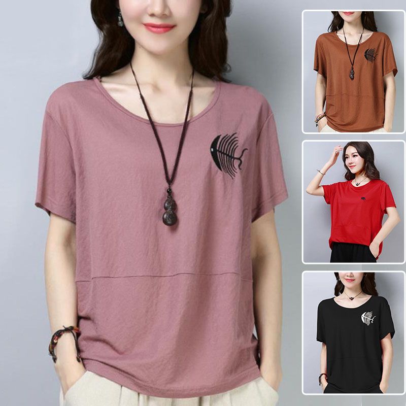 【買一送二!每件僅需333元!】寬鬆遮肚媽媽刺繡純色上衣