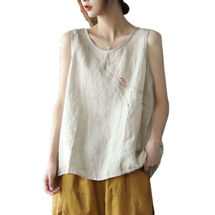 【全台免運!限時特惠買一送一!】隨性自在無袖棉麻刺繡背心