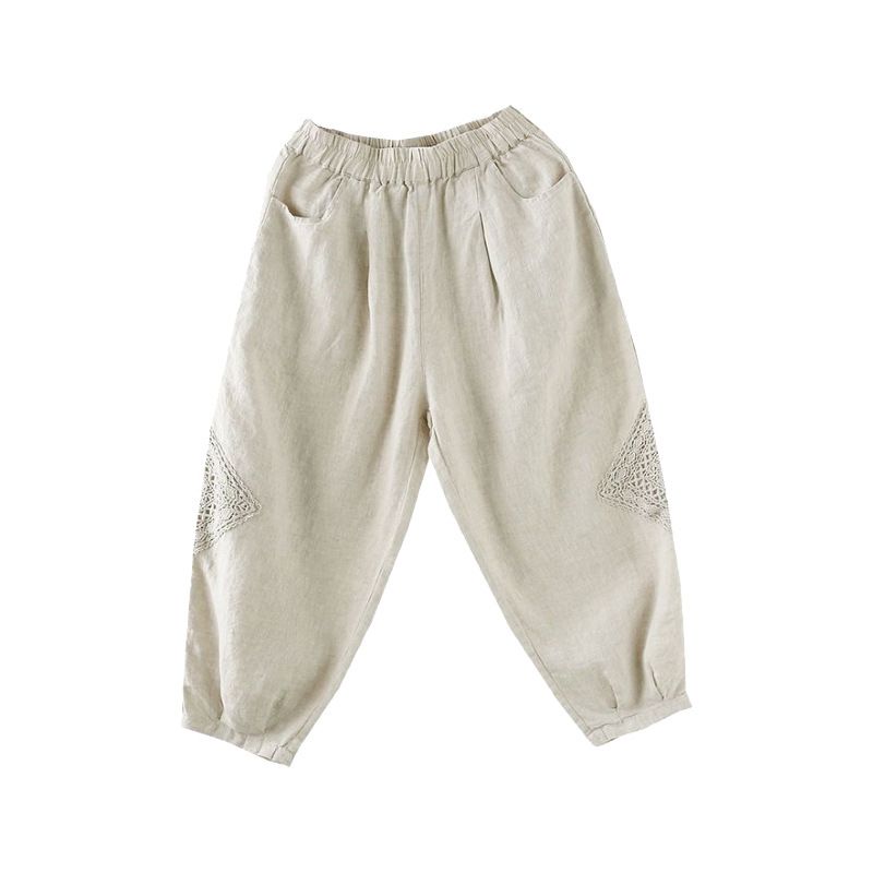 【全台免運!限時特惠買一送一!】蕾絲花邊拼接繡花棉麻休閒褲