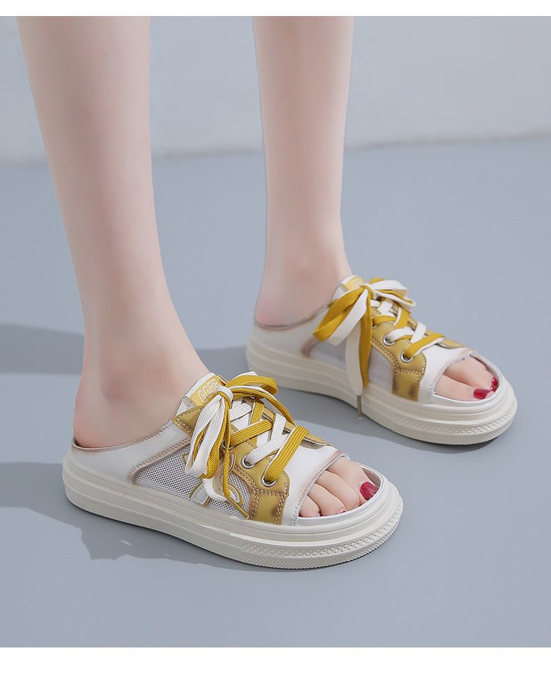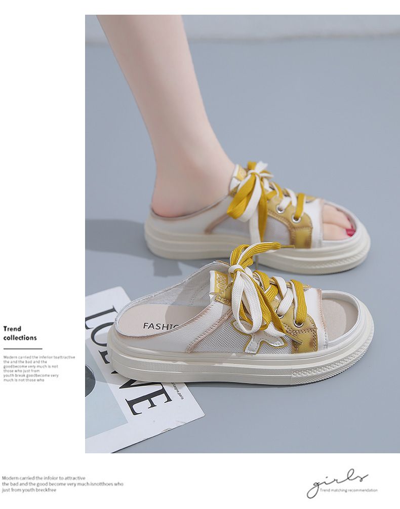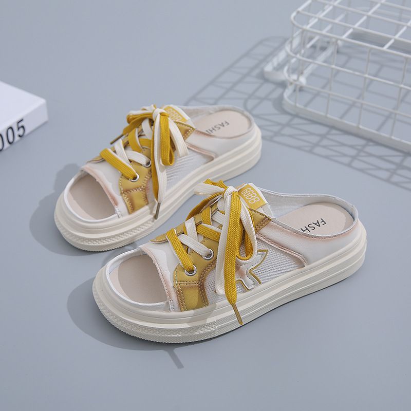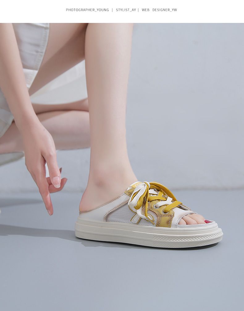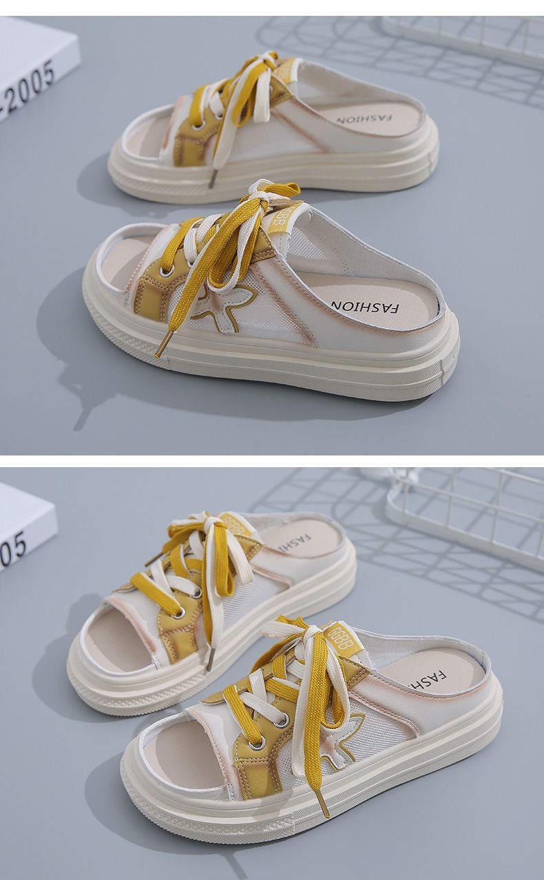 【高挑透氣!】夏季女士休閒一腳蹬半拖鞋【黃色】一雙