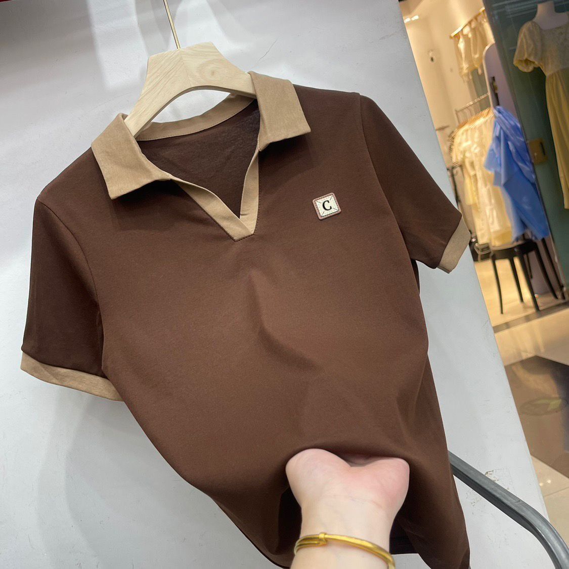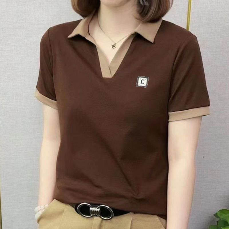 簡約挺闊媽媽polo衫【買一送一】【咖色】+【白色】各一件(每件499元)