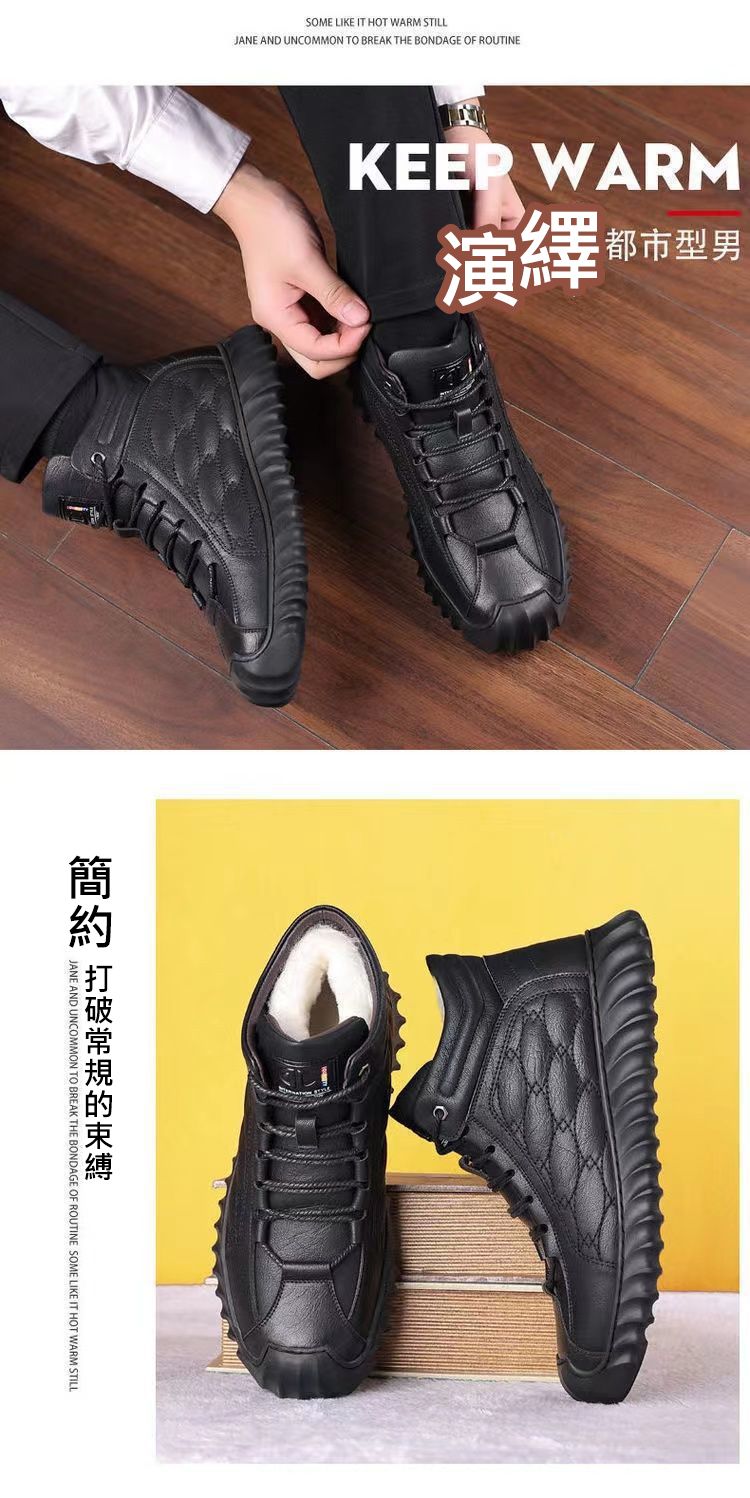 男士加厚絨毛高幫時尚棉鞋【黑色】一雙