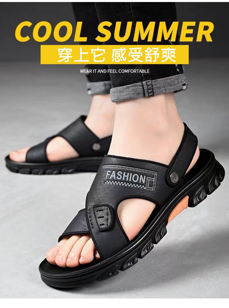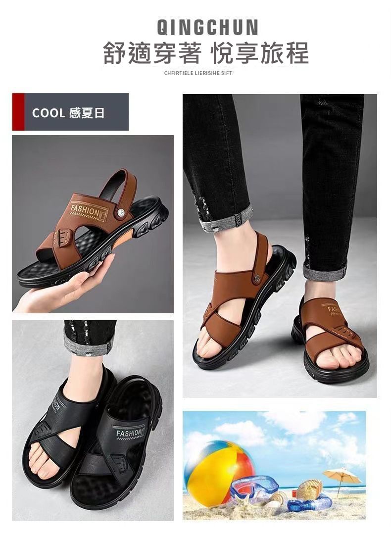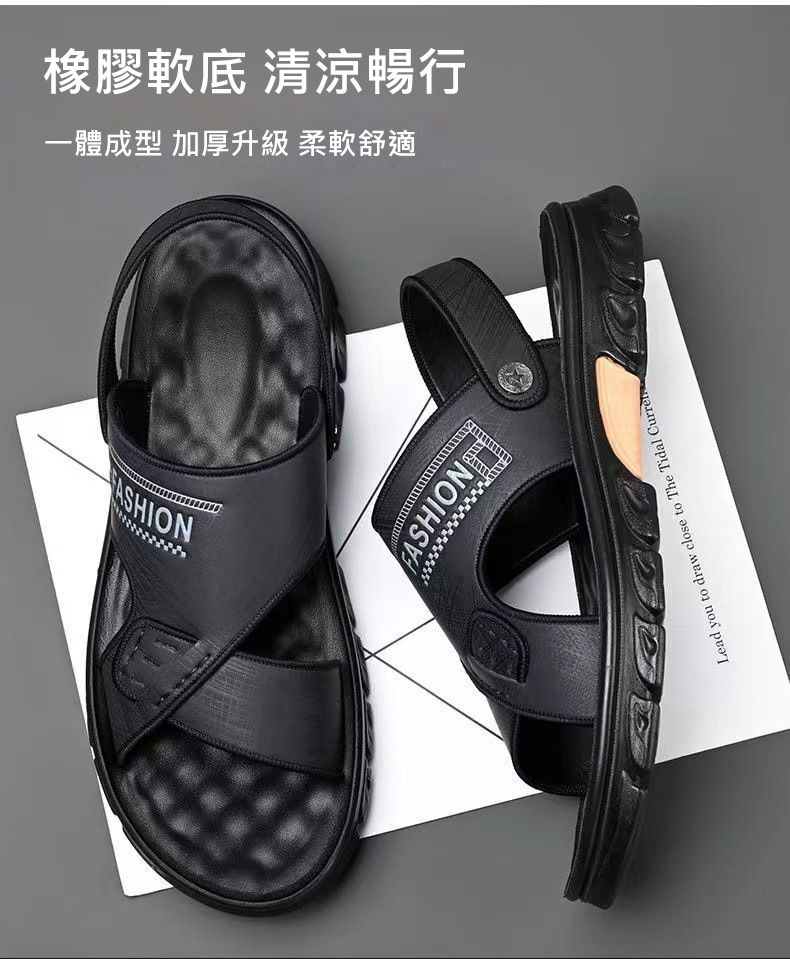 【軟彈清涼!】男士乳膠鞋墊防滑沙灘鞋【黑色】+【棕色】各一雙(優惠400)
