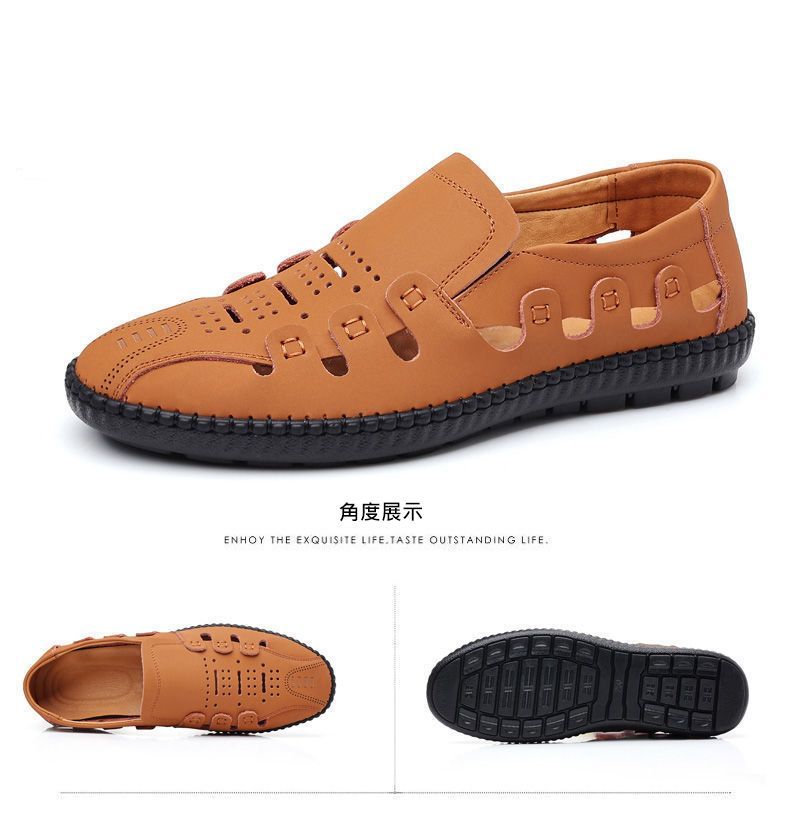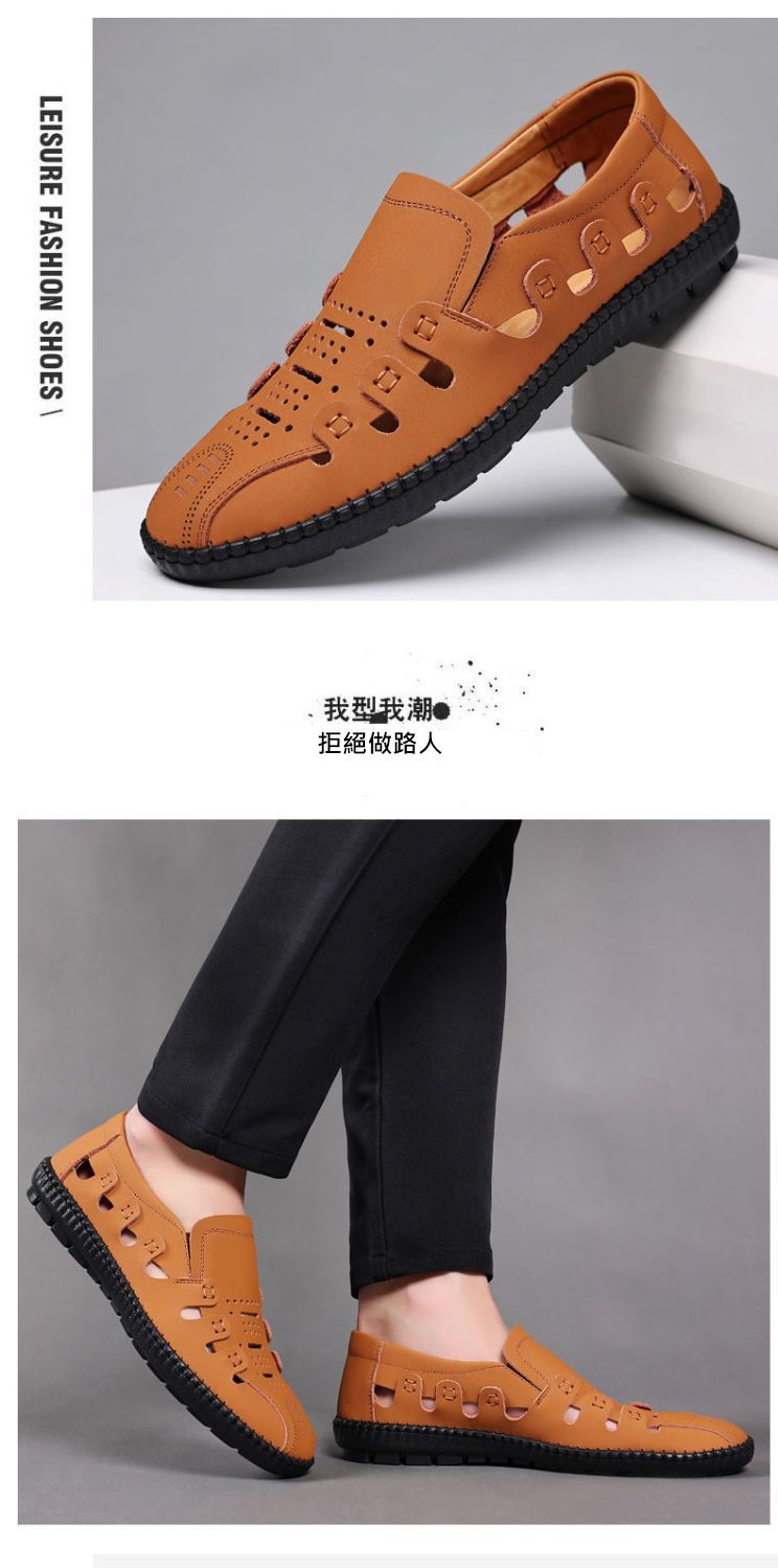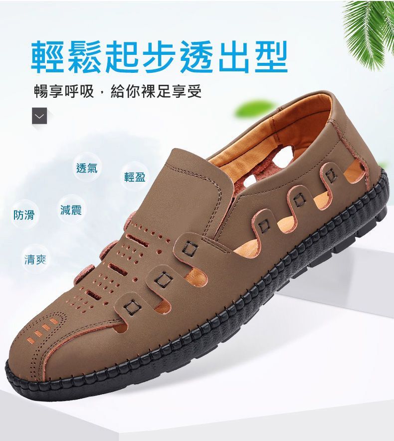 【頭層牛皮!】夏季鏤空真皮男鞋【卡其色】+【黑色】各一雙(優惠400)