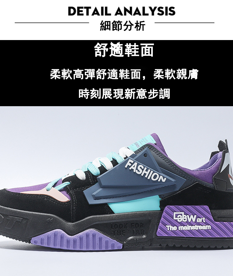 【潮酷舒適!】新款厚底運動休閒男鞋【紫色】一雙