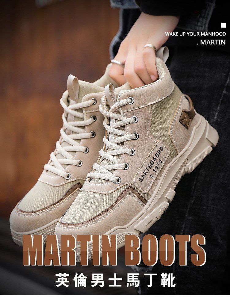 耐磨輕便百搭男士高幫馬丁靴【買一送一】卡其色兩雙(到手兩雙!每雙649元!)