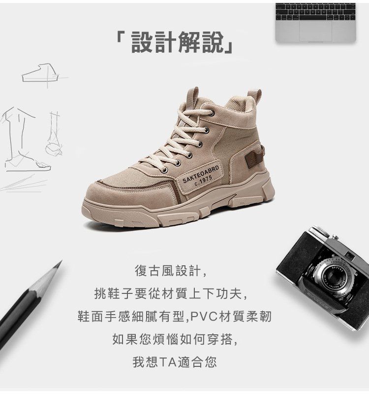 耐磨輕便百搭男士高幫馬丁靴【買一送一】卡其色+黑色各一雙(到手兩雙!每雙649元!)