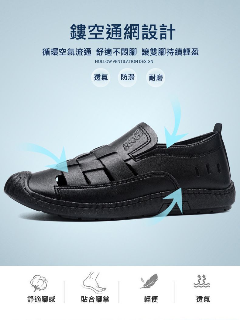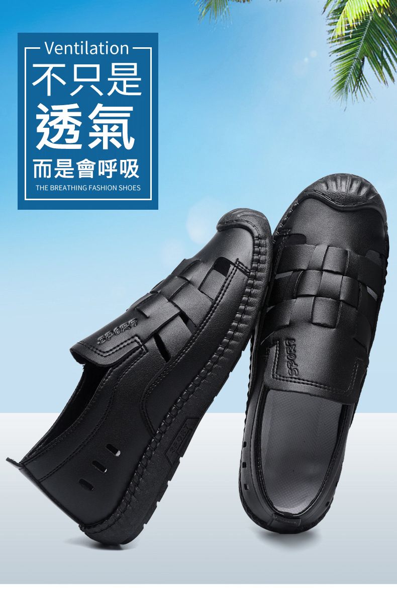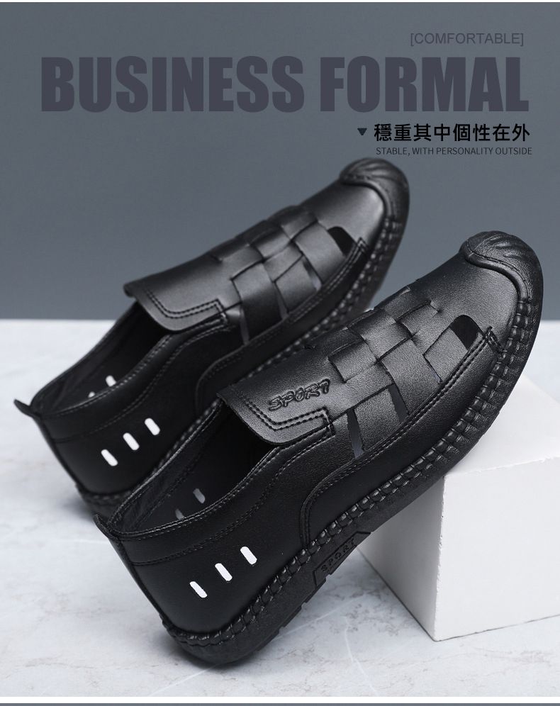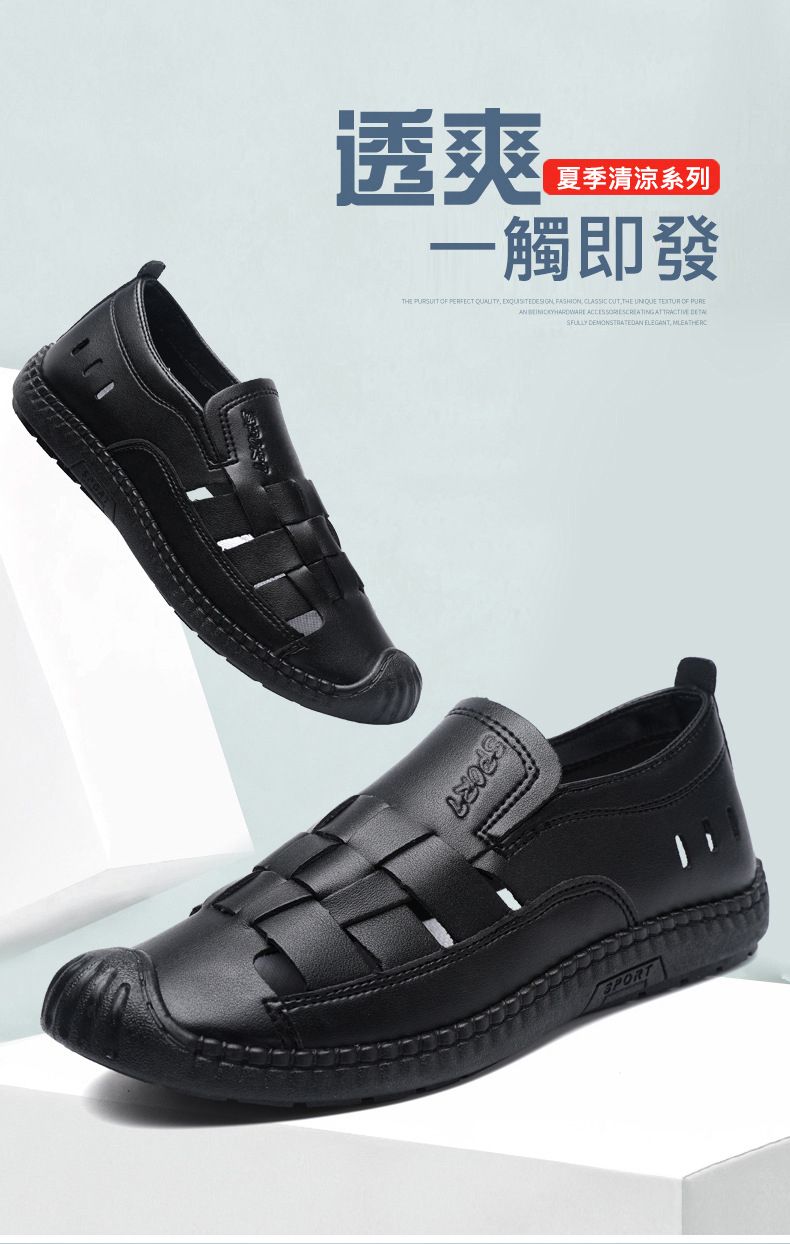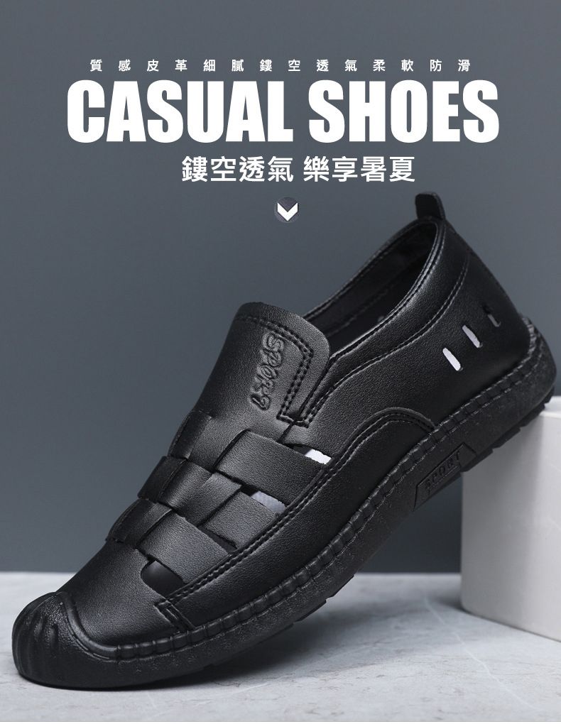 【透爽清涼】夏季男士鏤空柔軟透氣皮鞋【黑色】一雙