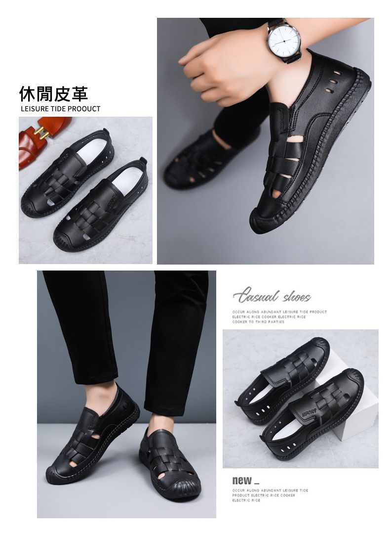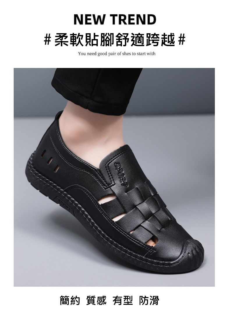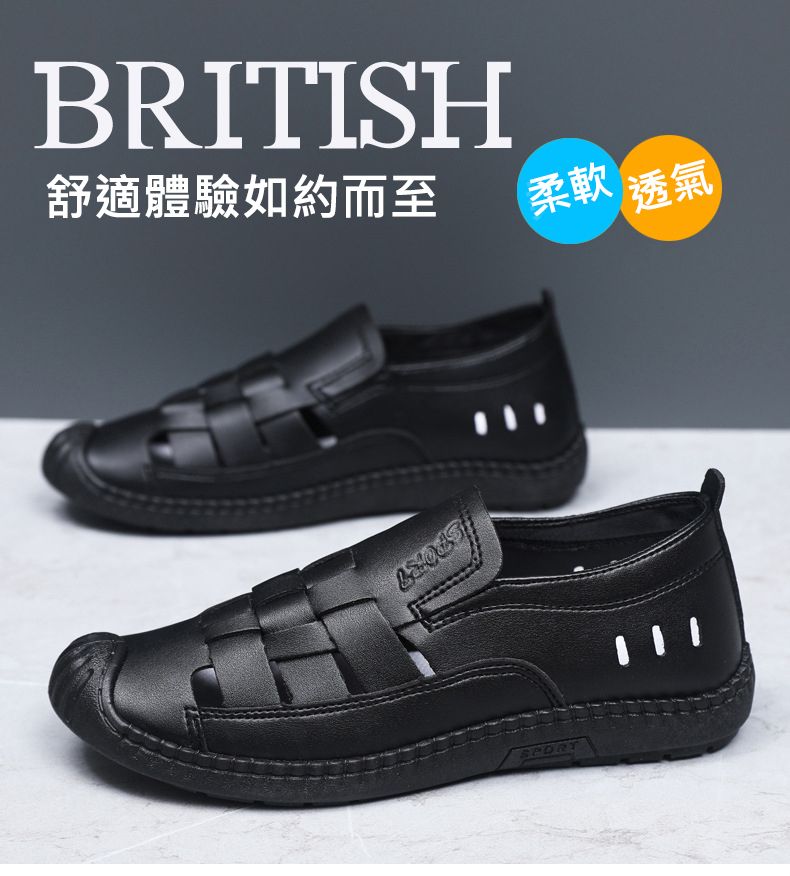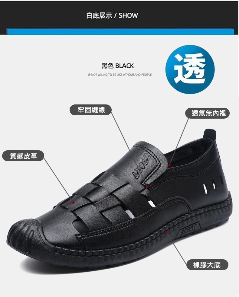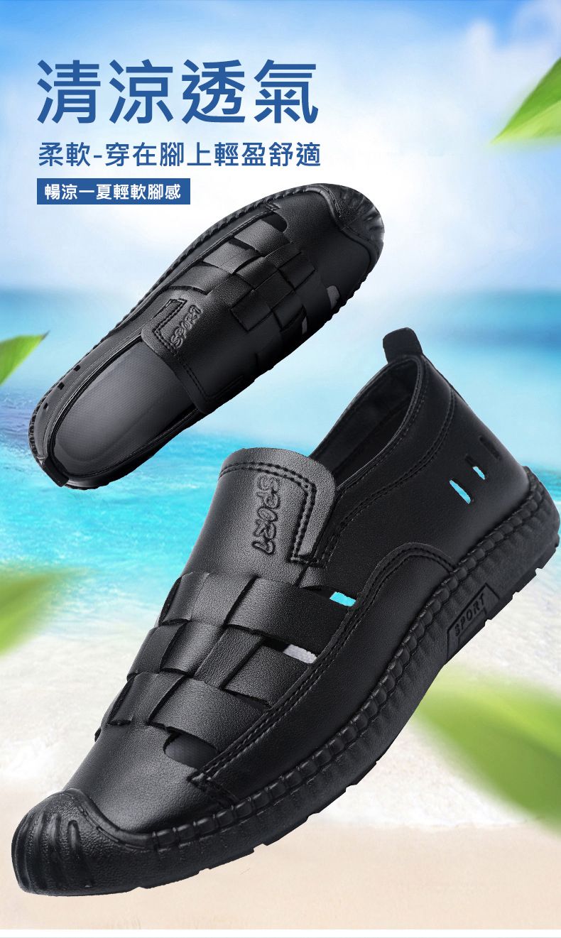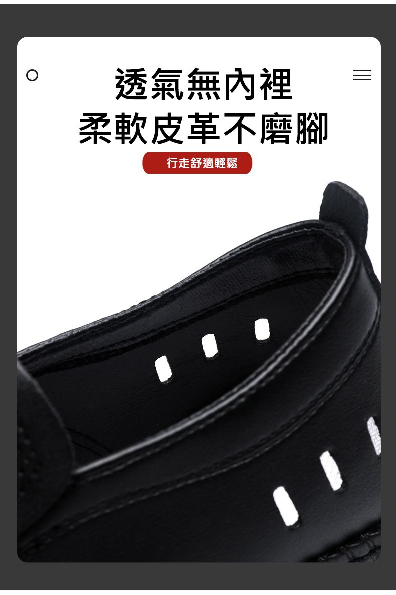【透爽清涼】夏季男士鏤空柔軟透氣皮鞋【黑色】一雙