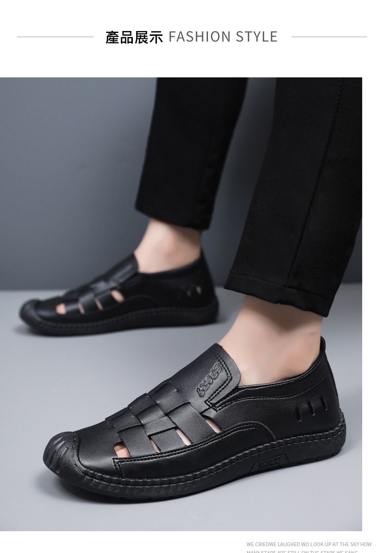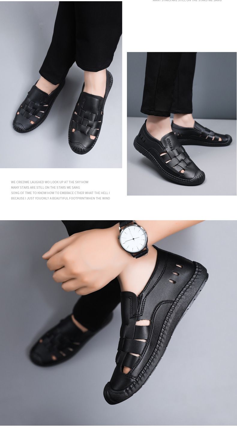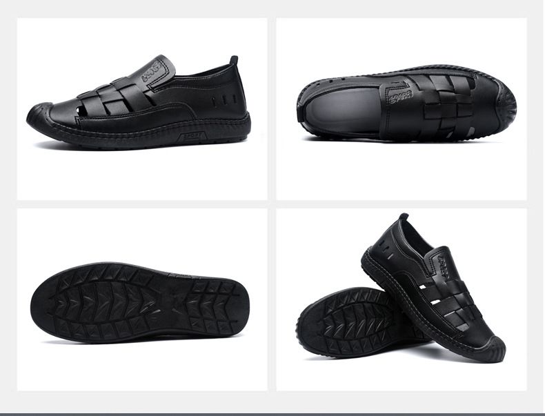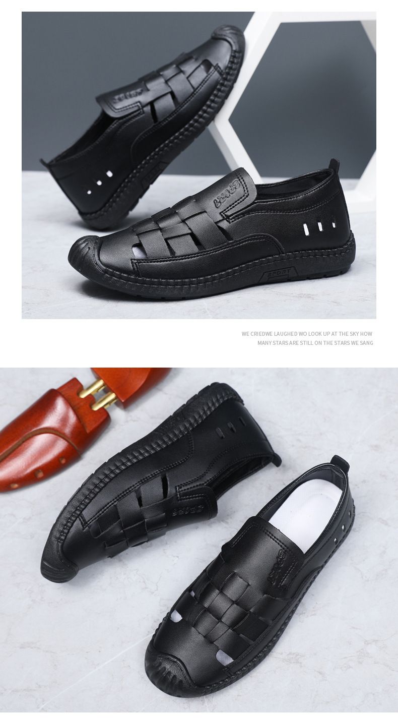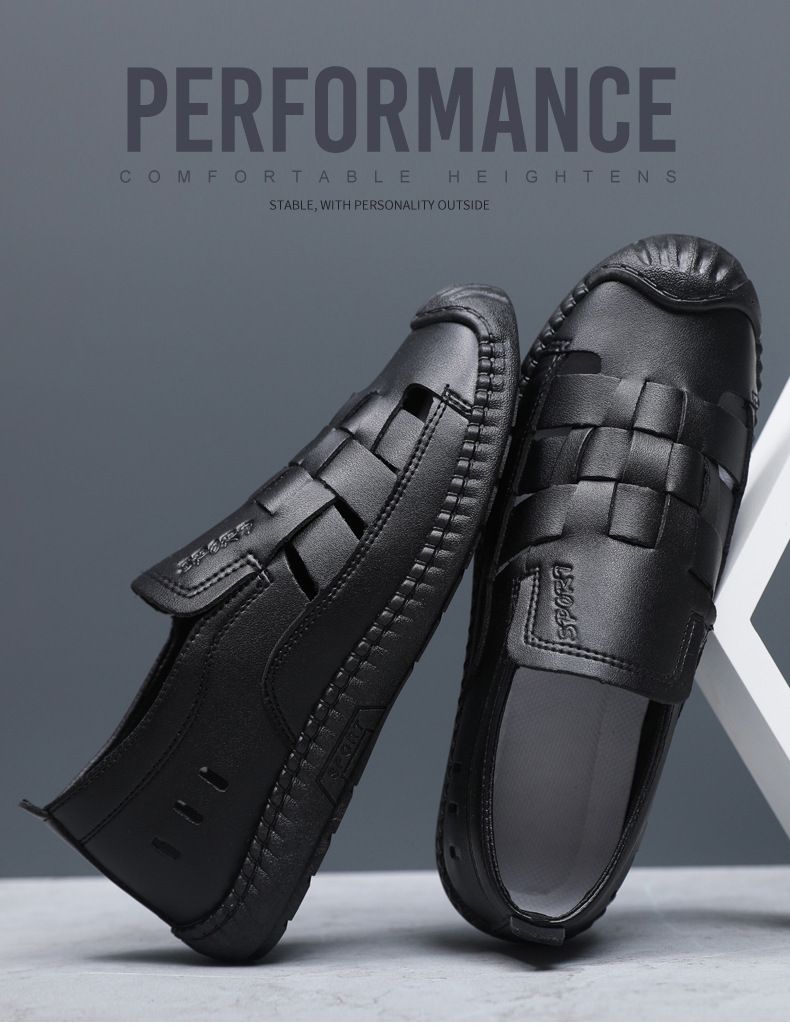 【透爽清涼】夏季男士鏤空柔軟透氣皮鞋【黑色】一雙