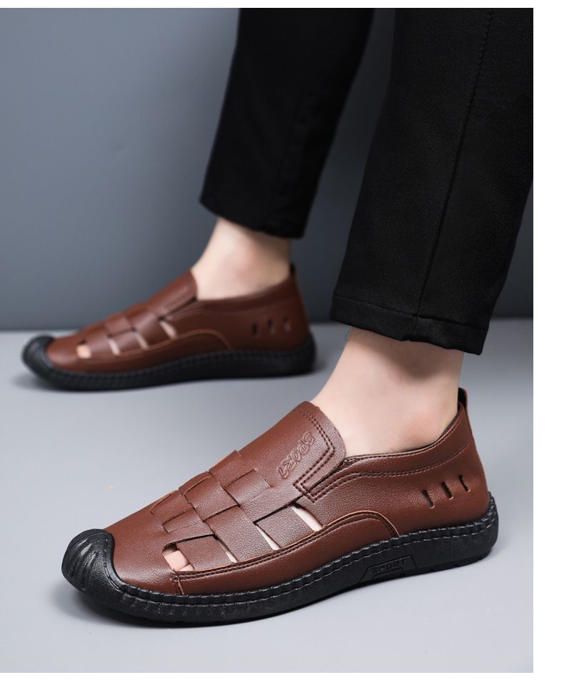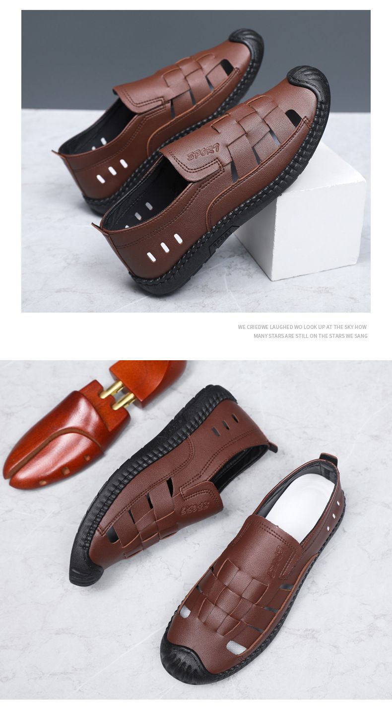 【透爽清涼】夏季男士鏤空柔軟透氣皮鞋【咖色】+【黑色】各一雙(優惠400)