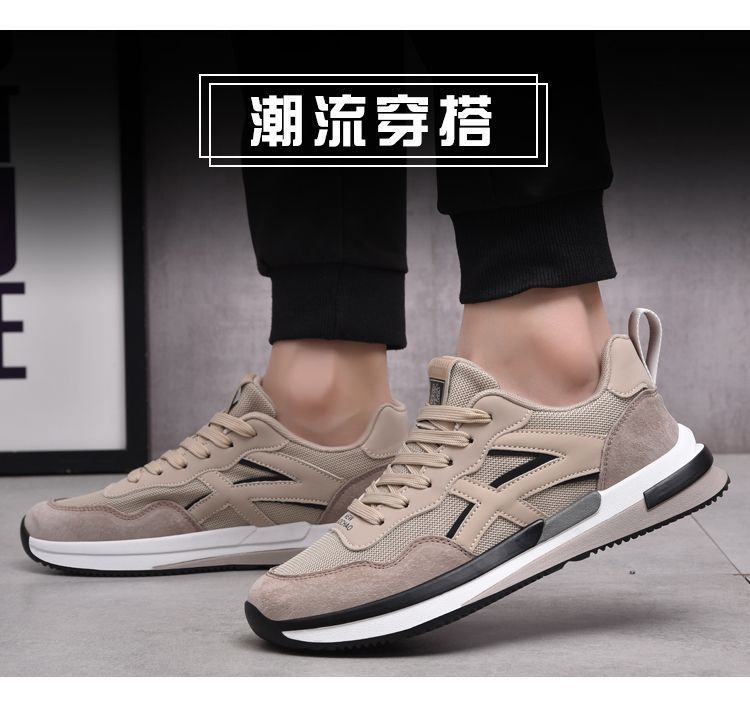 【不悶腳!】圓頭皮網拼接男運動鞋【咖色】+【黑色】各一雙(優惠400)