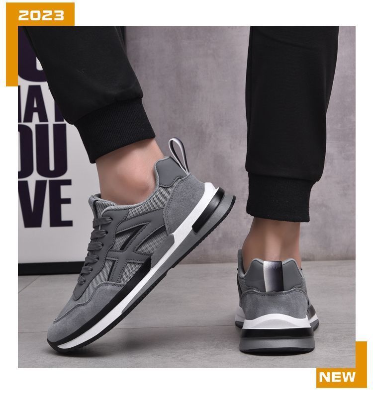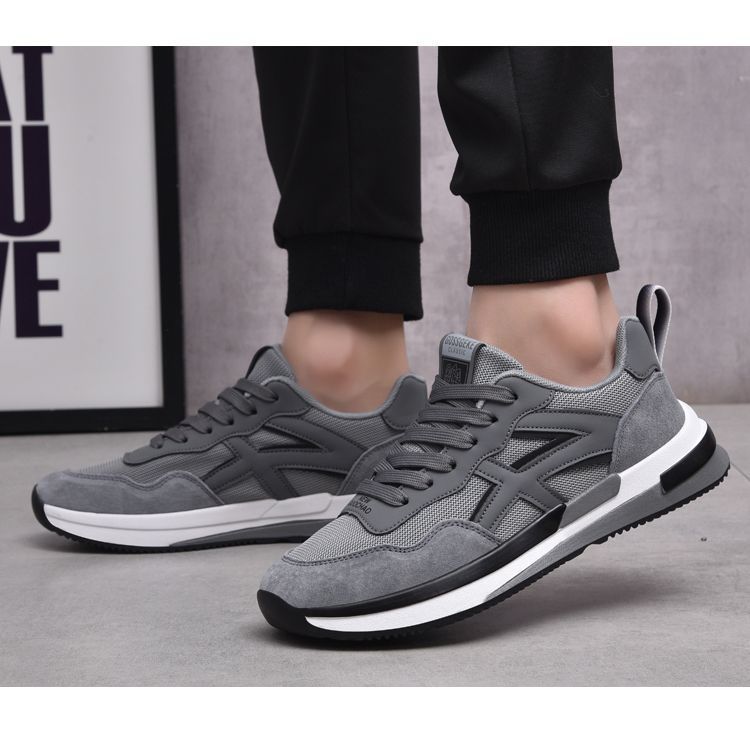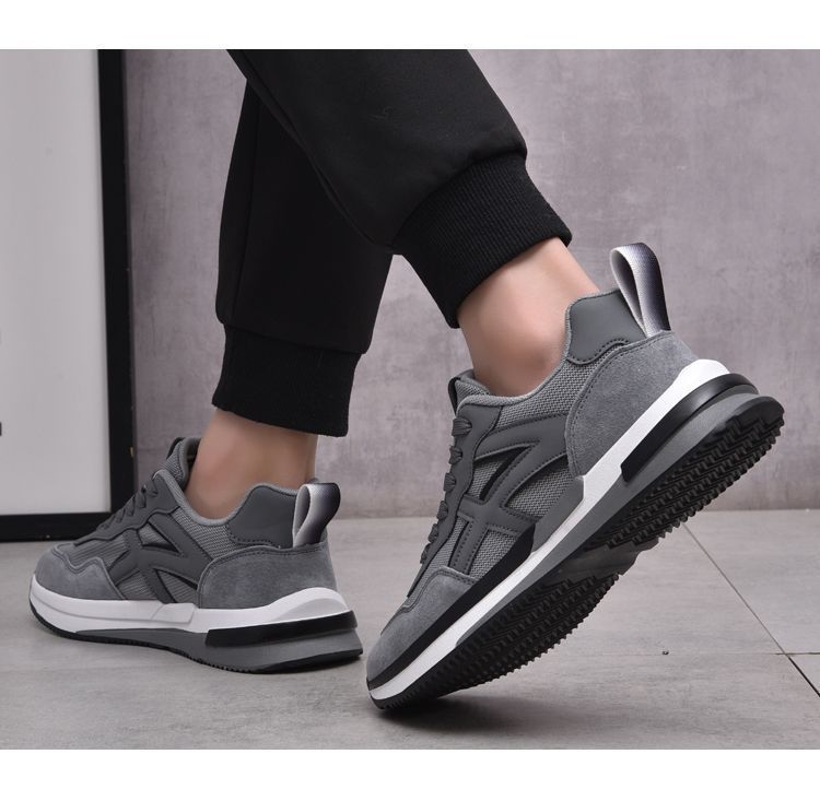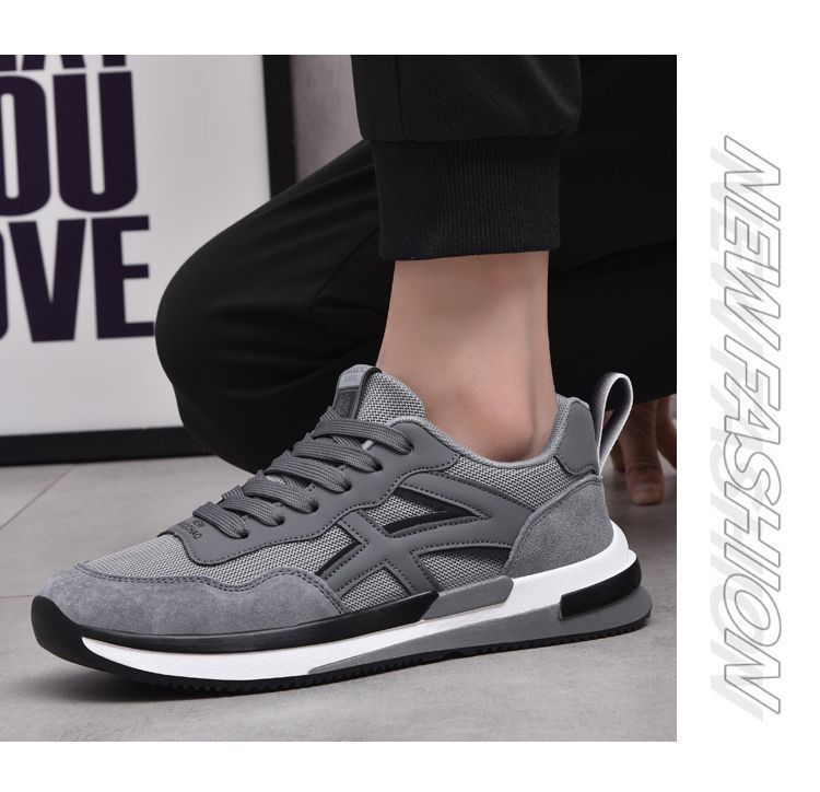 【不悶腳!】圓頭皮網拼接男運動鞋【灰色】+【咖色】各一雙(優惠400)