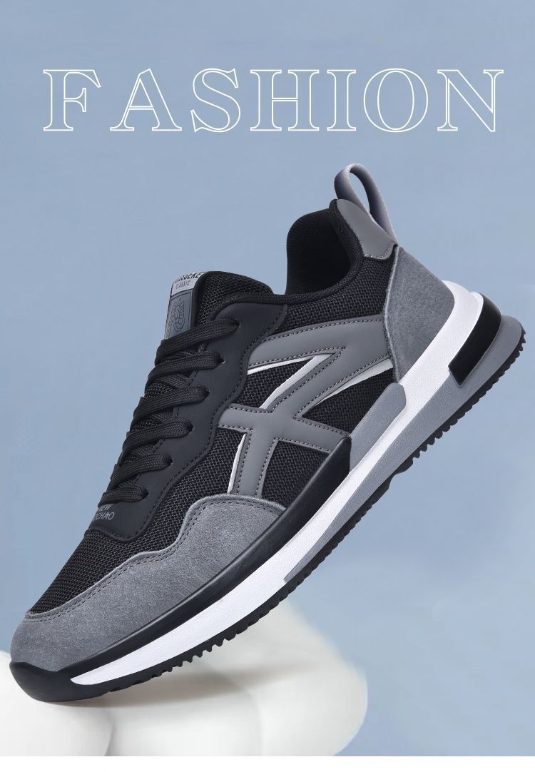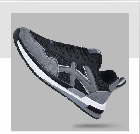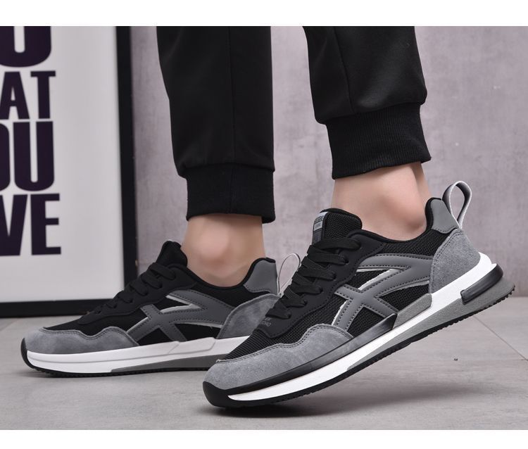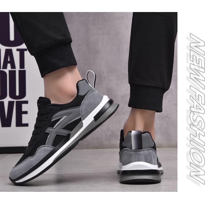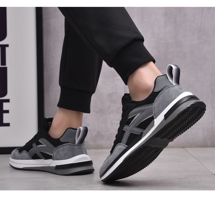 【不悶腳!】圓頭皮網拼接男運動鞋【灰色】+【黑色】各一雙(優惠400)