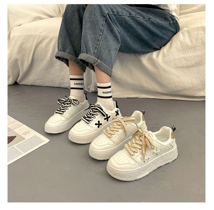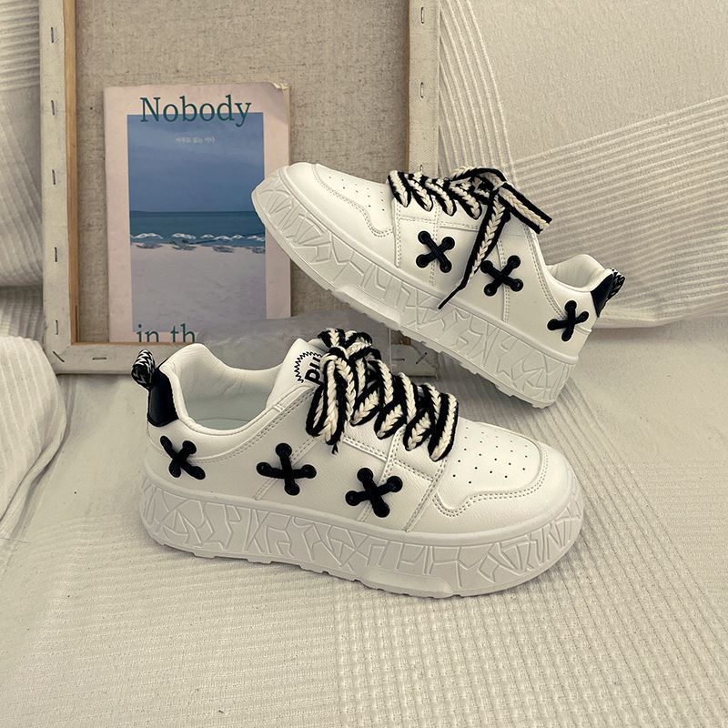 【百搭爆款!】女士休閒小白鞋【白色】+【黑色】各一雙(優惠400)