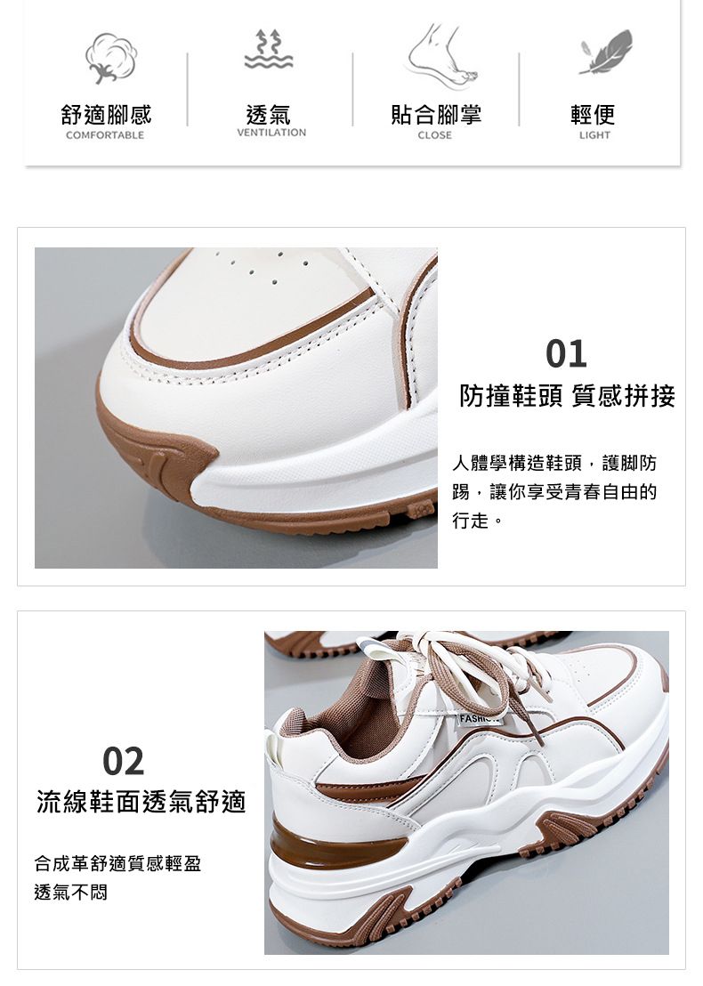 【致敬青春!】時尚百搭厚底增高女鞋【卡其色皮面】+【黑色皮面】各一雙(優惠400)