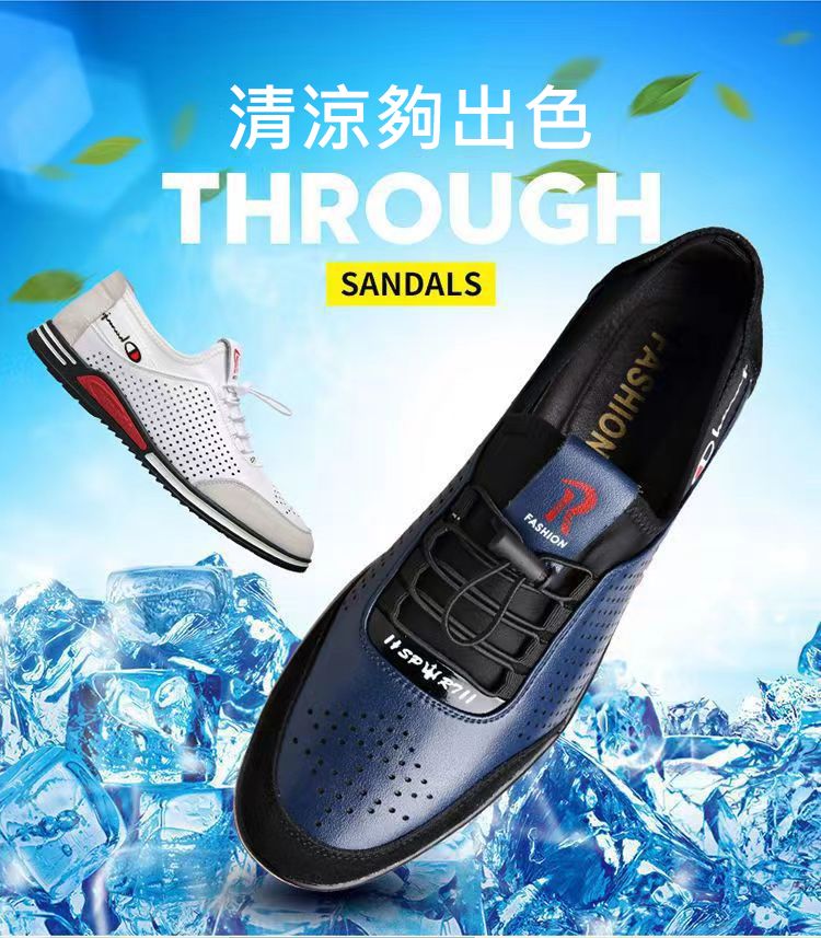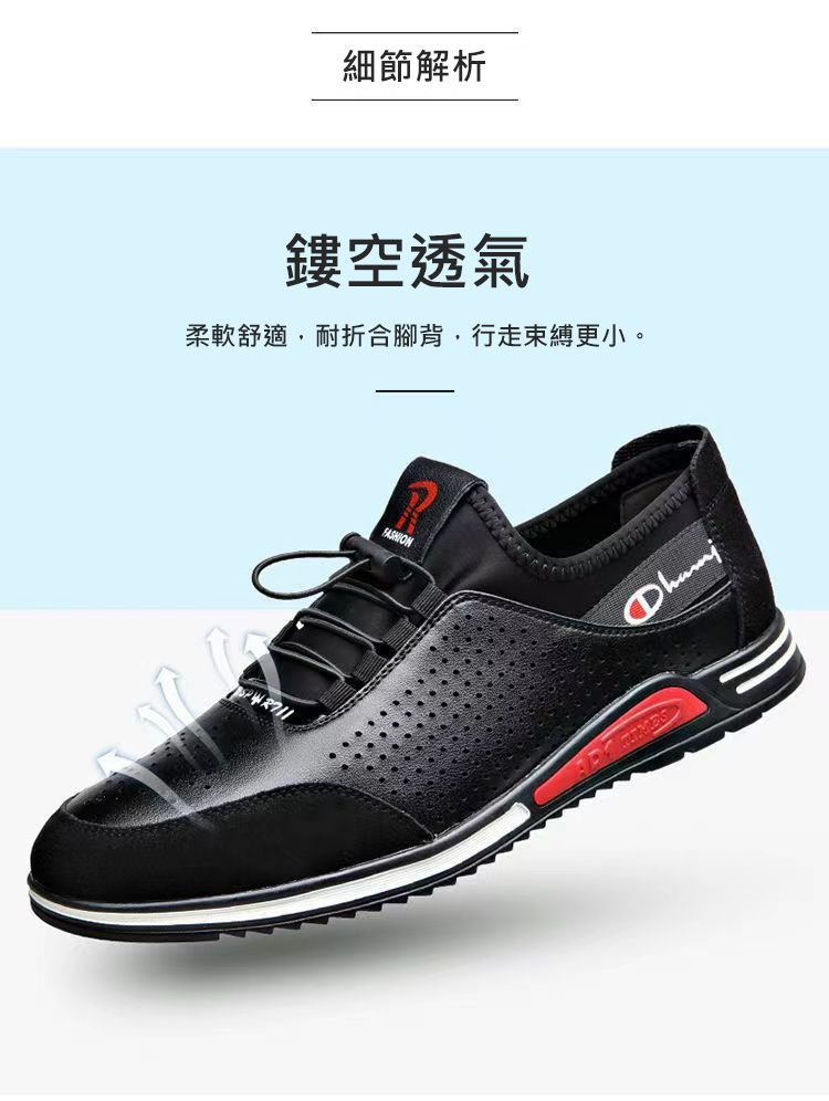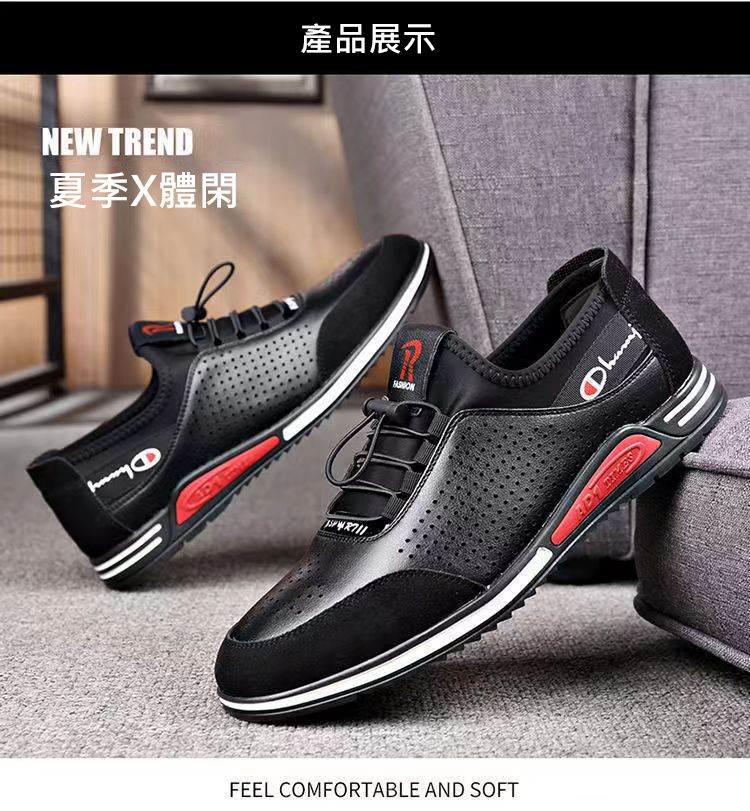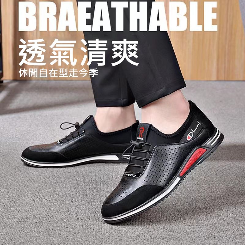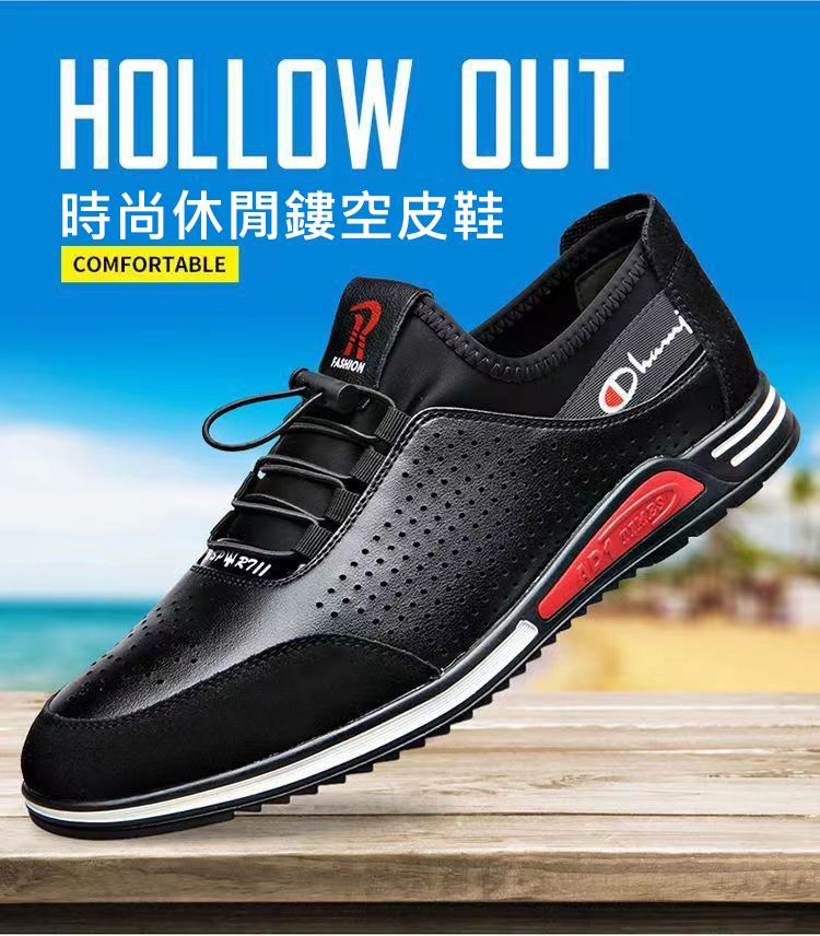 男士百搭鏤空軟皮軟底皮鞋【買一送一】【黑色】+【白色】各一雙