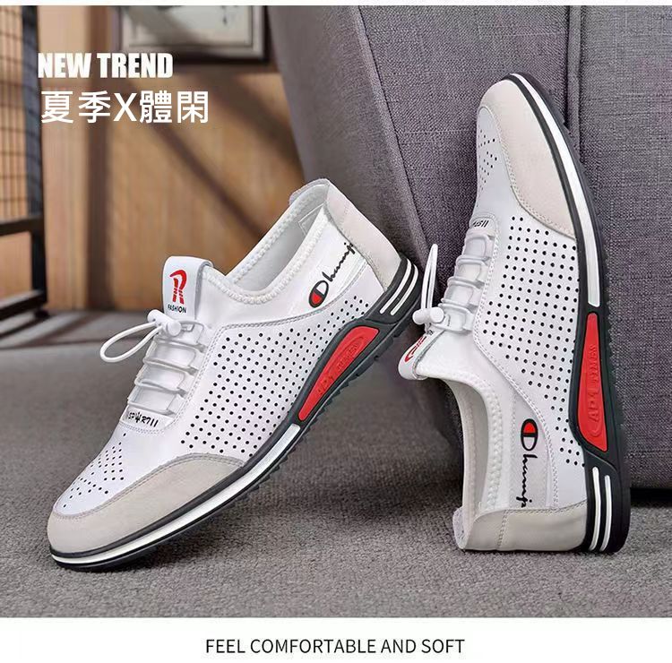 男士百搭鏤空軟皮軟底皮鞋【買一送一】【白色】兩雙