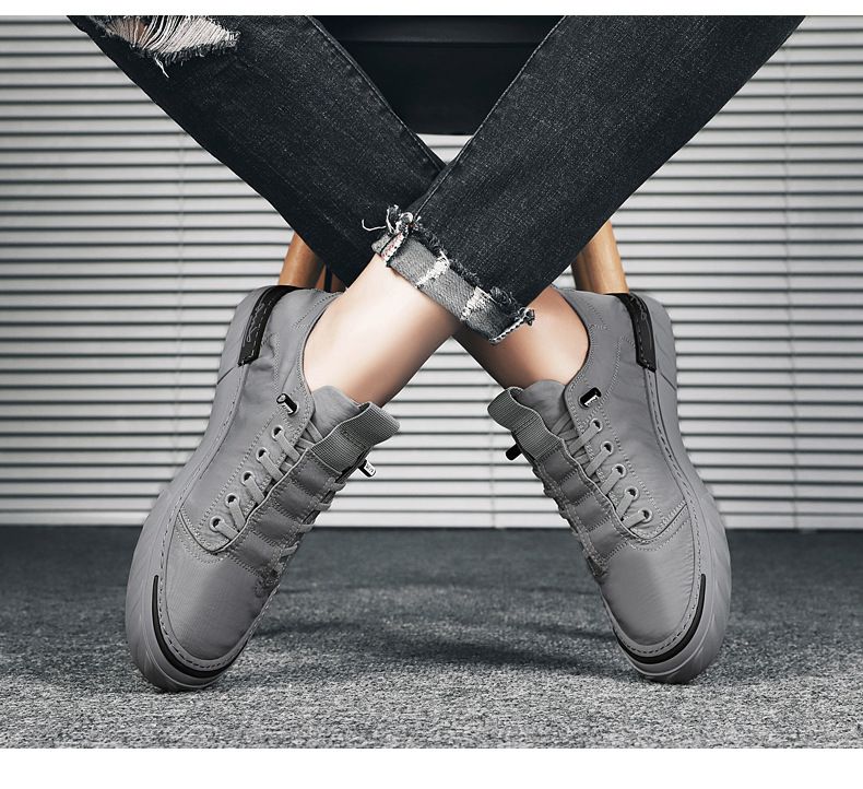 【透氣薄款】軟皮防滑舒適男士運動休閒鞋【灰色】一雙