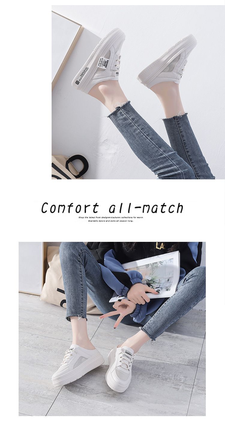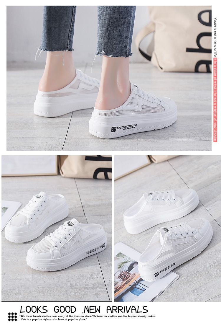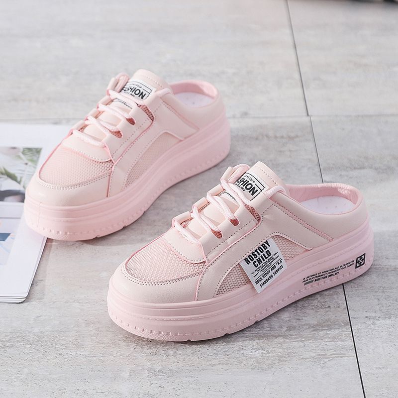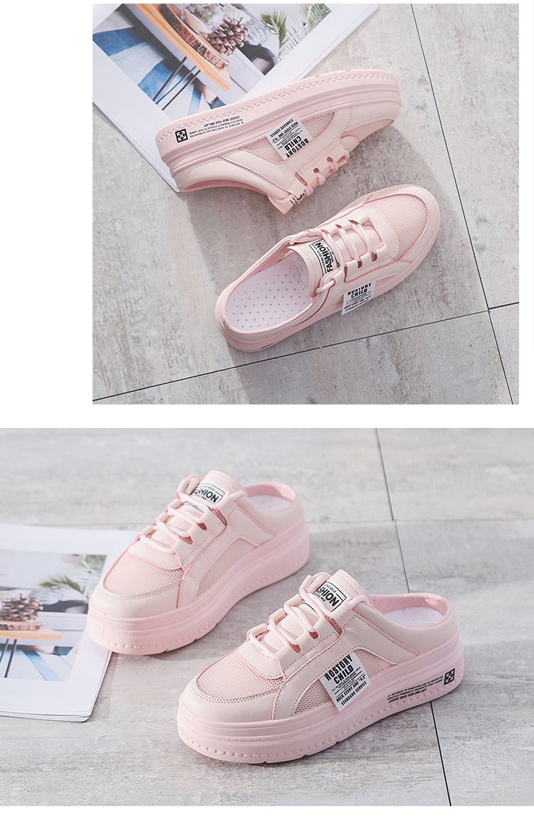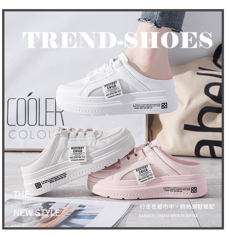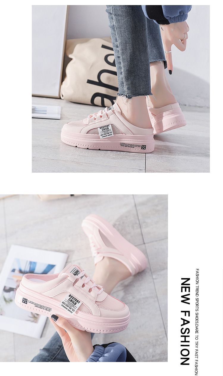 【懶人一腳蹬!】新款女士夏季網面包頭半拖鞋【白色】+【粉色】各一雙(優惠400)