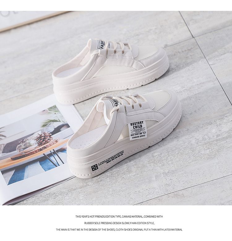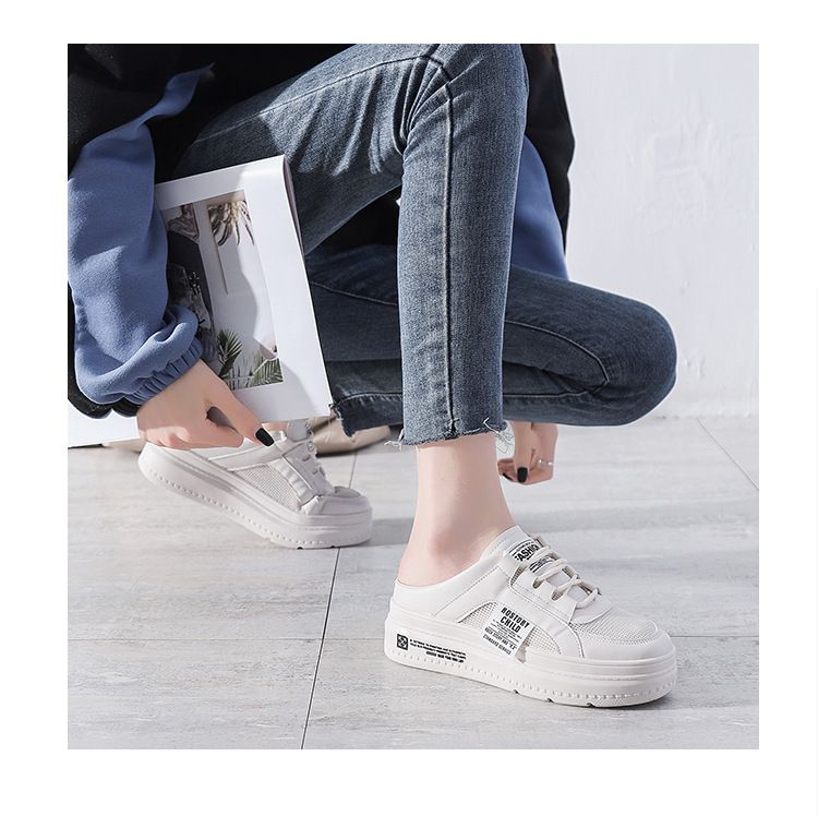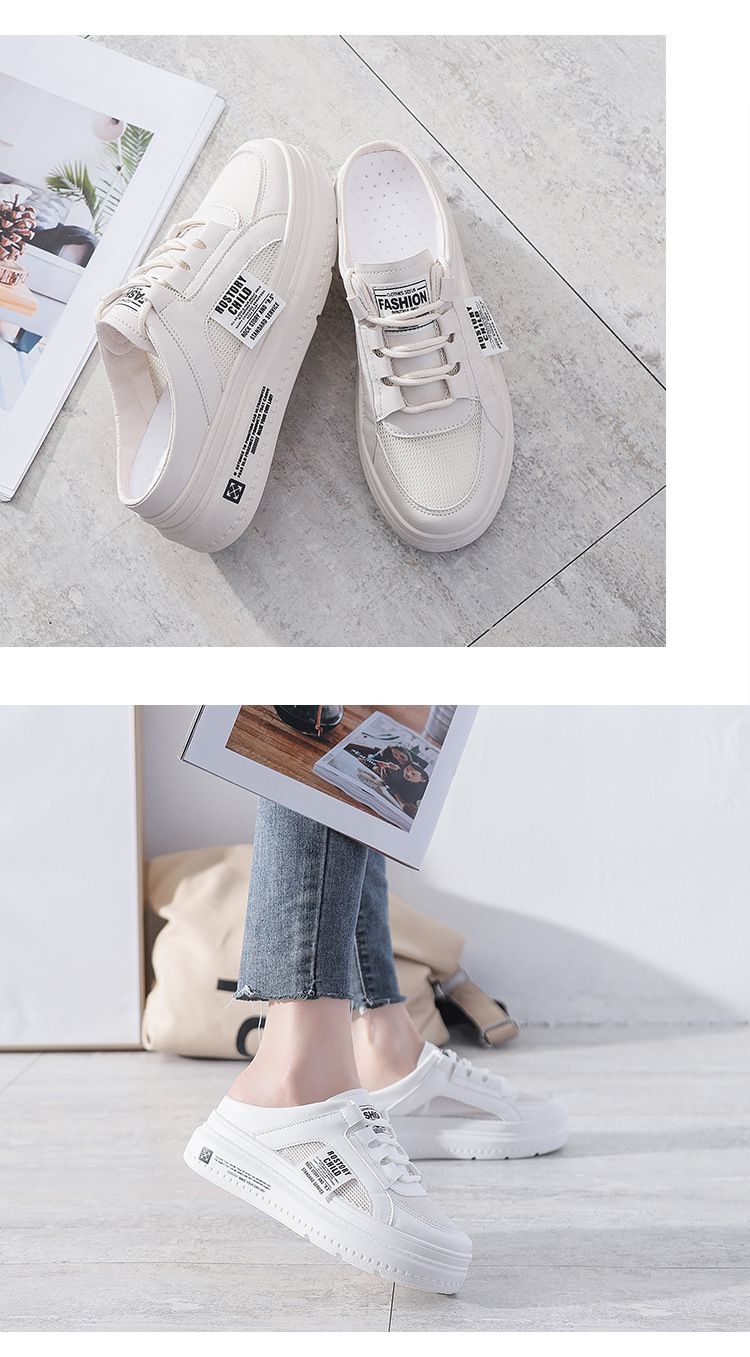 【懶人一腳蹬!】新款女士夏季網面包頭半拖鞋【白色】+【米色】各一雙(優惠400)