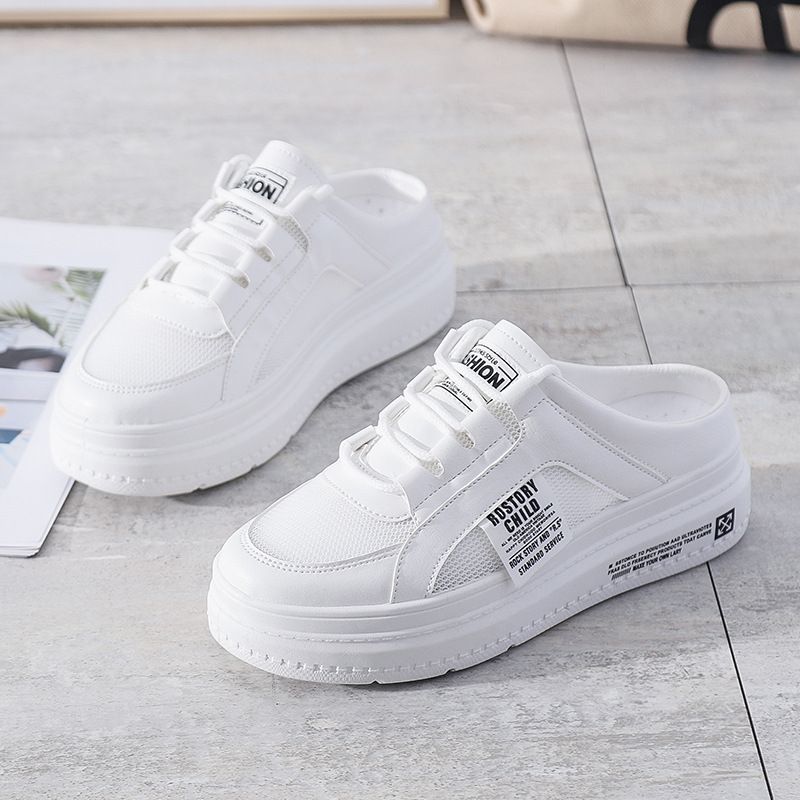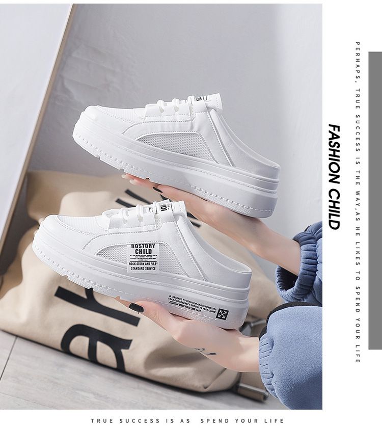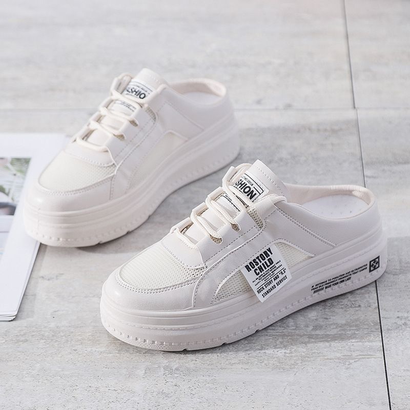【懶人一腳蹬!】新款女士夏季網面包頭半拖鞋【白色】一雙