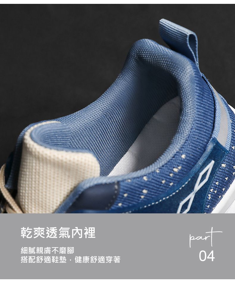 【雨天濕地不打滑!】男士軟底透氣飛織運動鞋【米藍色】一雙