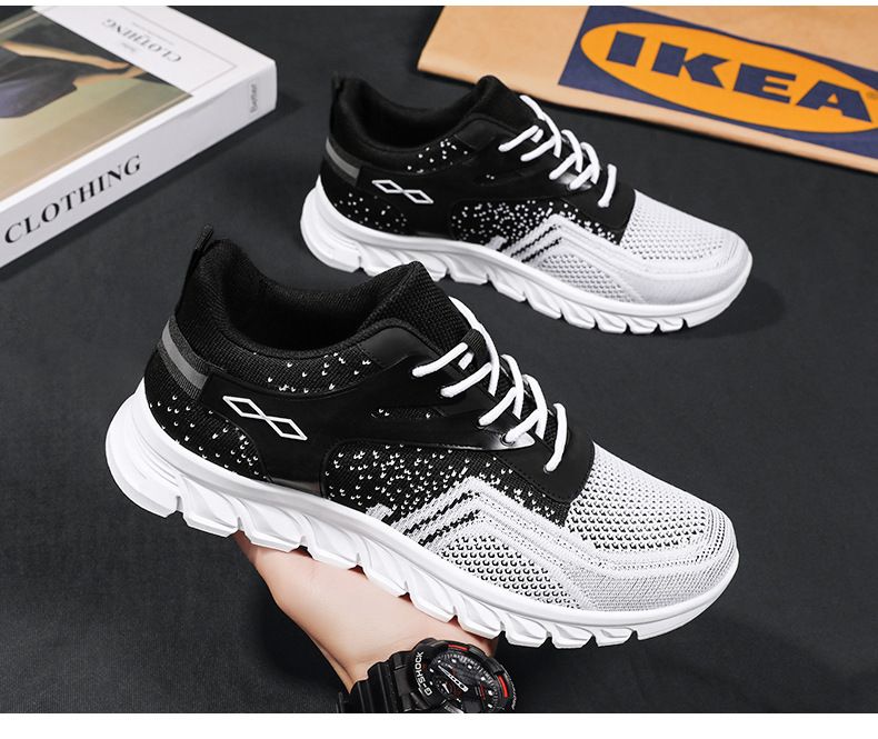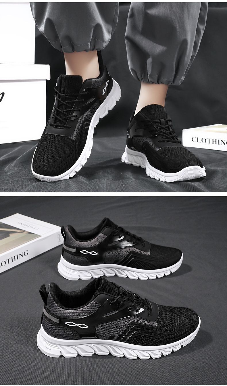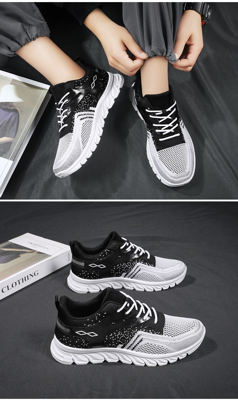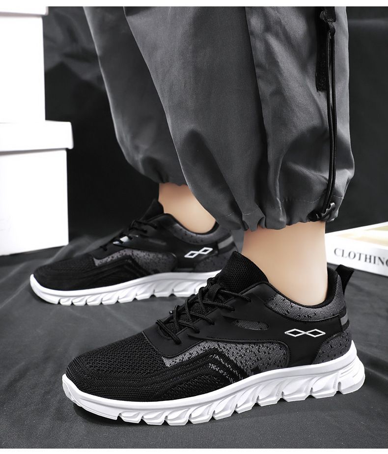 【雨天濕地不打滑!】男士軟底透氣飛織運動鞋【白色】+【黑色】各一雙(優惠400)