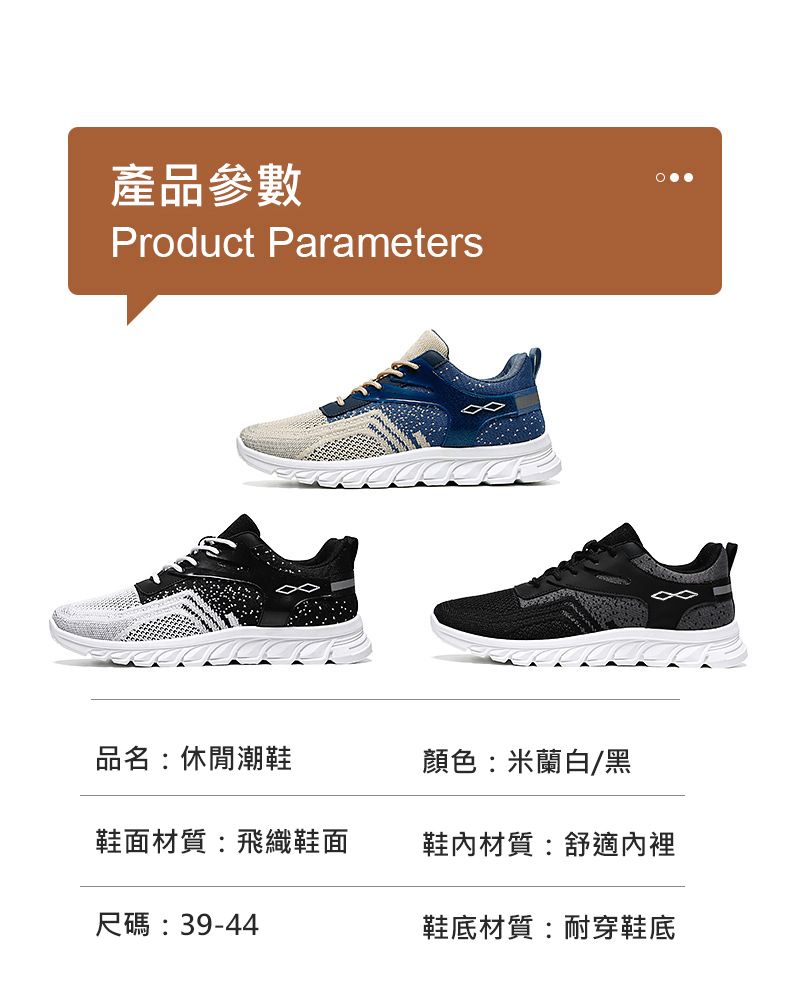 【雨天濕地不打滑!】男士軟底透氣飛織運動鞋【米藍色】+【黑色】各一雙(優惠400)